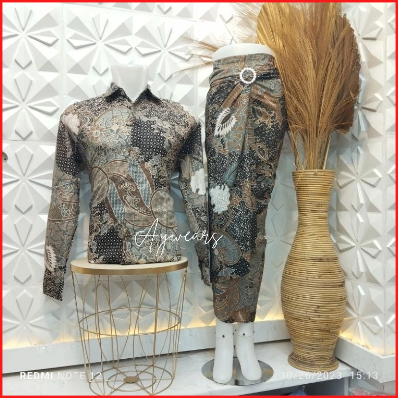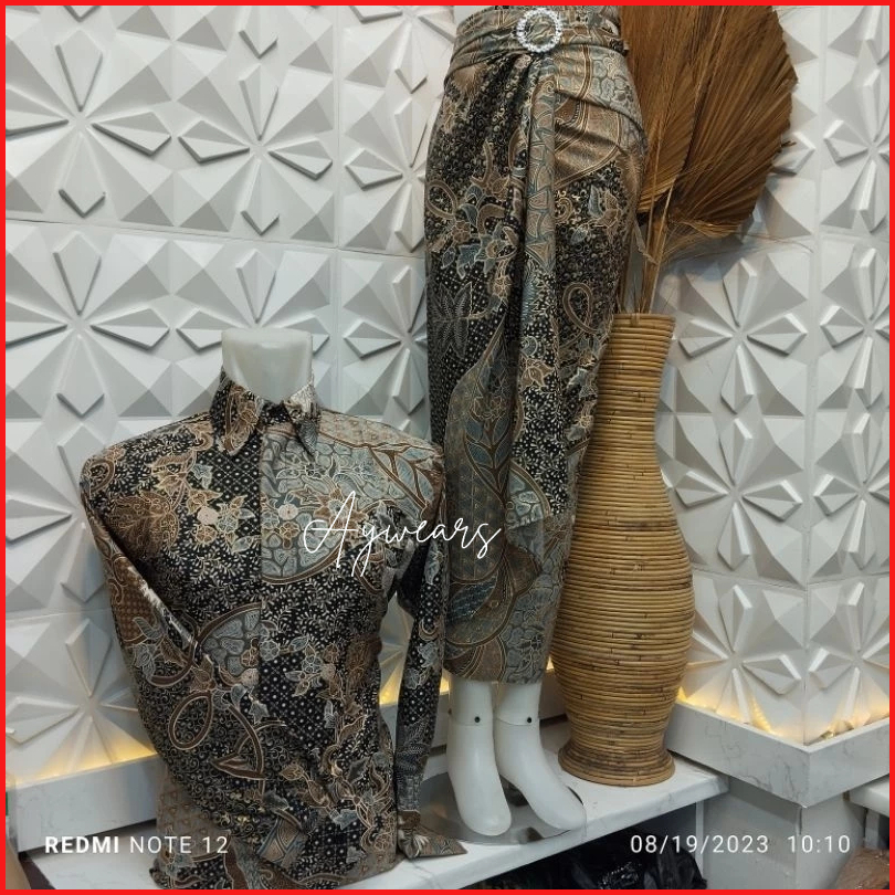 Aywears- Batik Couple Kemeja Batik Couple Aurel Moca Kemeja Set Pesta Batik Stelan Batik Kemeja Set Batik Pesta Kondanga