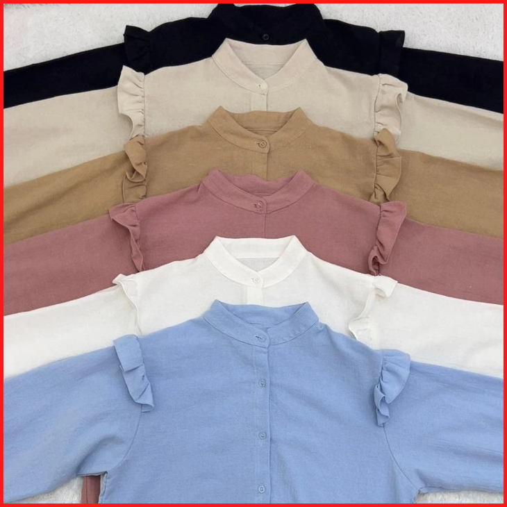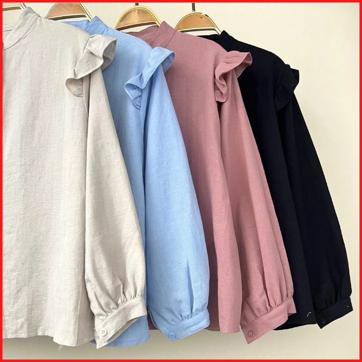 Yurim Blouse Ruffle - Atasan Wanita - Kemeja Linen Basic Lengan Panjang