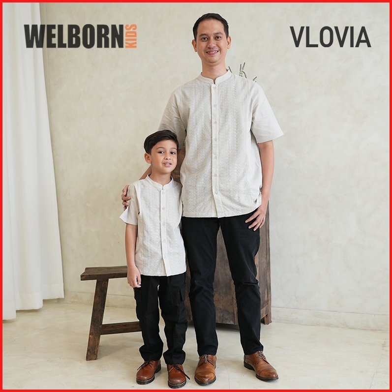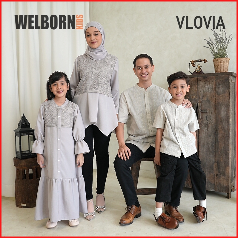 Welborn Kids X Vlovia Sarimbit Baju Muslim Koko Premium Raya Keluarga Couple Ayah Anak Laki Laki Atasan Katun Abu Abu