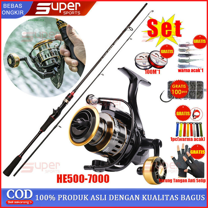 7 Buah Setset Joran Pancing Lengkap Murah Joran Pancing Putar 1.65-2.4m Dengan Joran Pancing Kombinasi Reel 5.2 1 Dengan