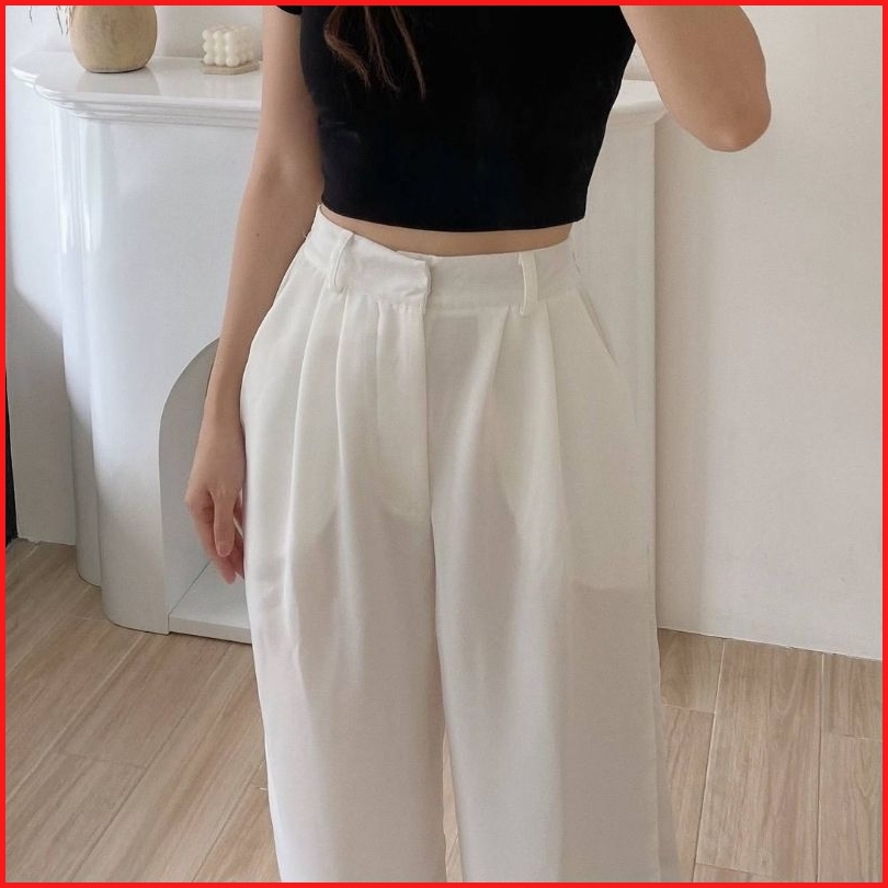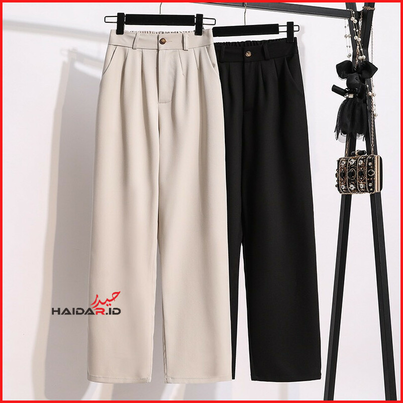Haidar Id - Loose Pants Trousers Highwaist Polyester Celana Kulot Wanita Celana Kantor Wanita Celana Kerja Wanita Celana
