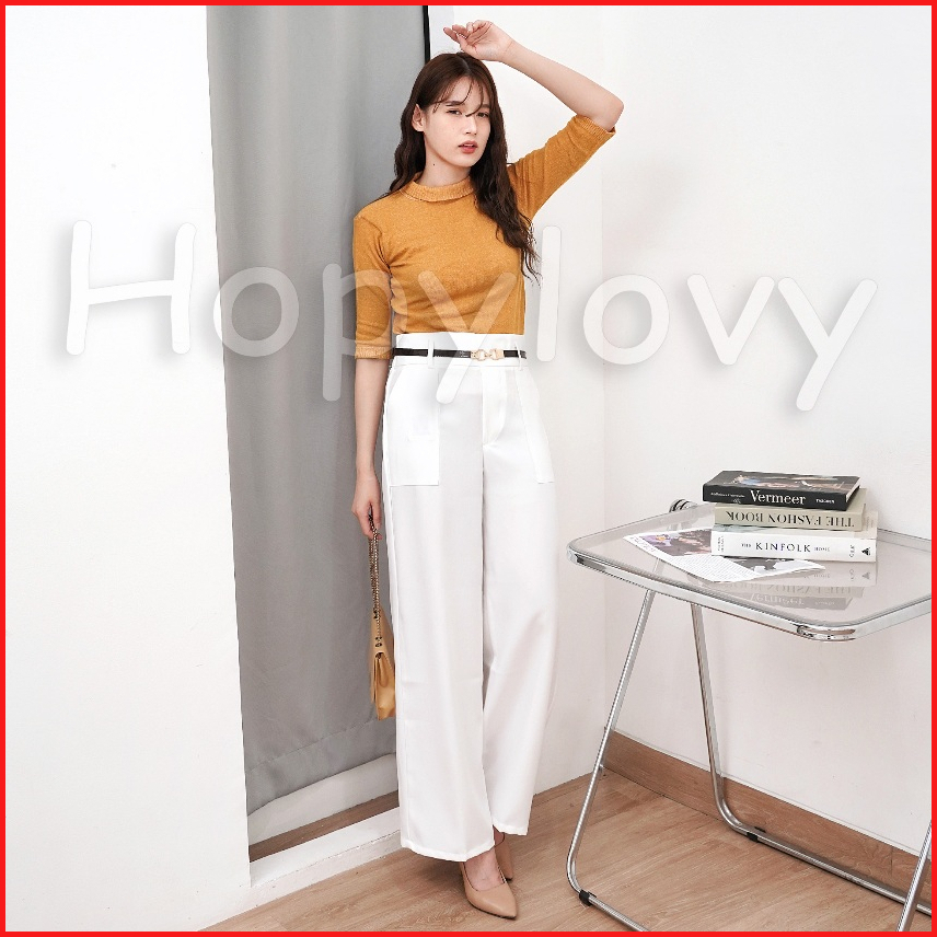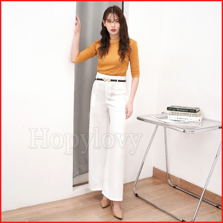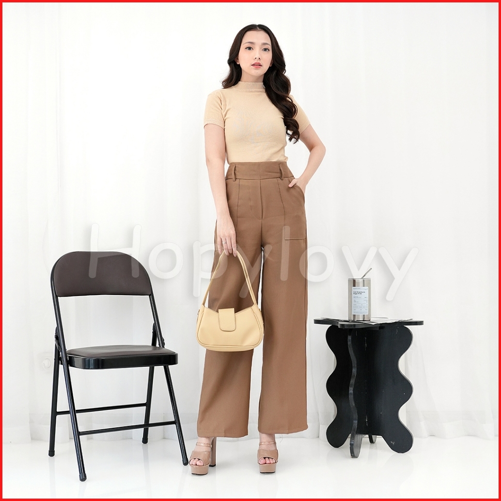 Hopylovy Aleza Pants Celana Panjang Wanita Pinggang Highwaist Bahan Semiwoll