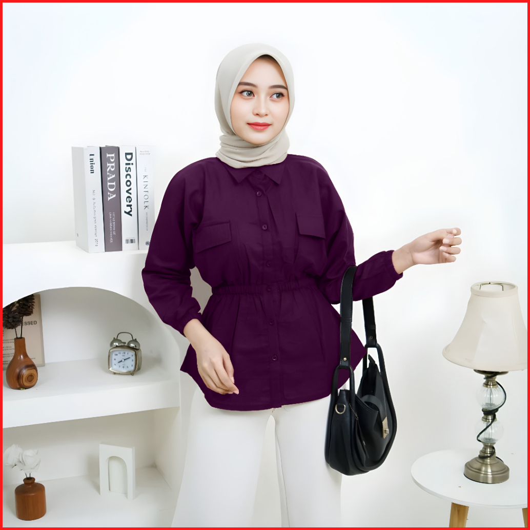 Beena Linen Shirt Top Atasan Wanita Blouse Casual Polos Terbaru
