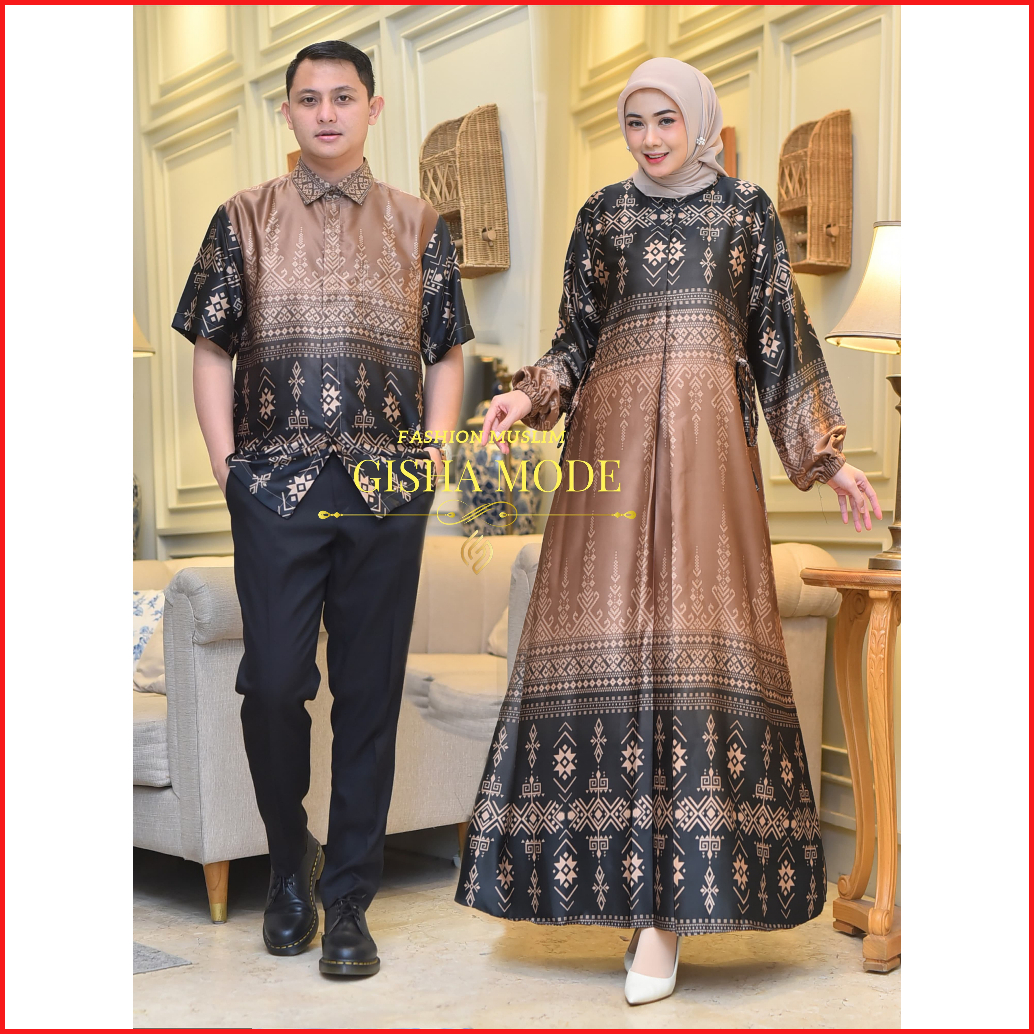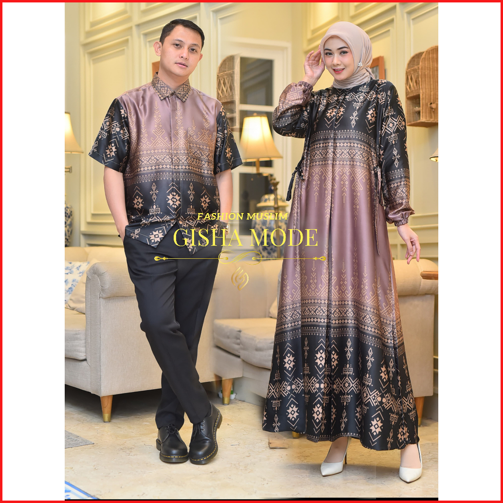 Dress Syameera Silk Premium Gamis Silk Motif Bunga Set Couple Kemeja Pria Atasan Couple Terbaru Lebaran Pasangan Muslim
