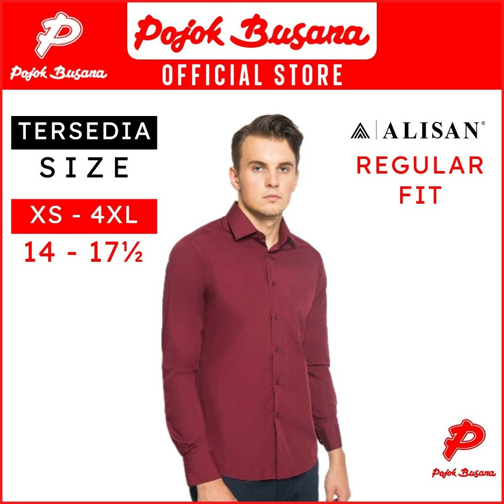 Pojok Busana Alisan Kemeja Lengan Panjang Polos Pria Regular Fit Hitam Putih Biru Coklat Maroon Abu Dan Kemeja Koko Alis