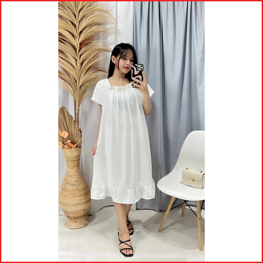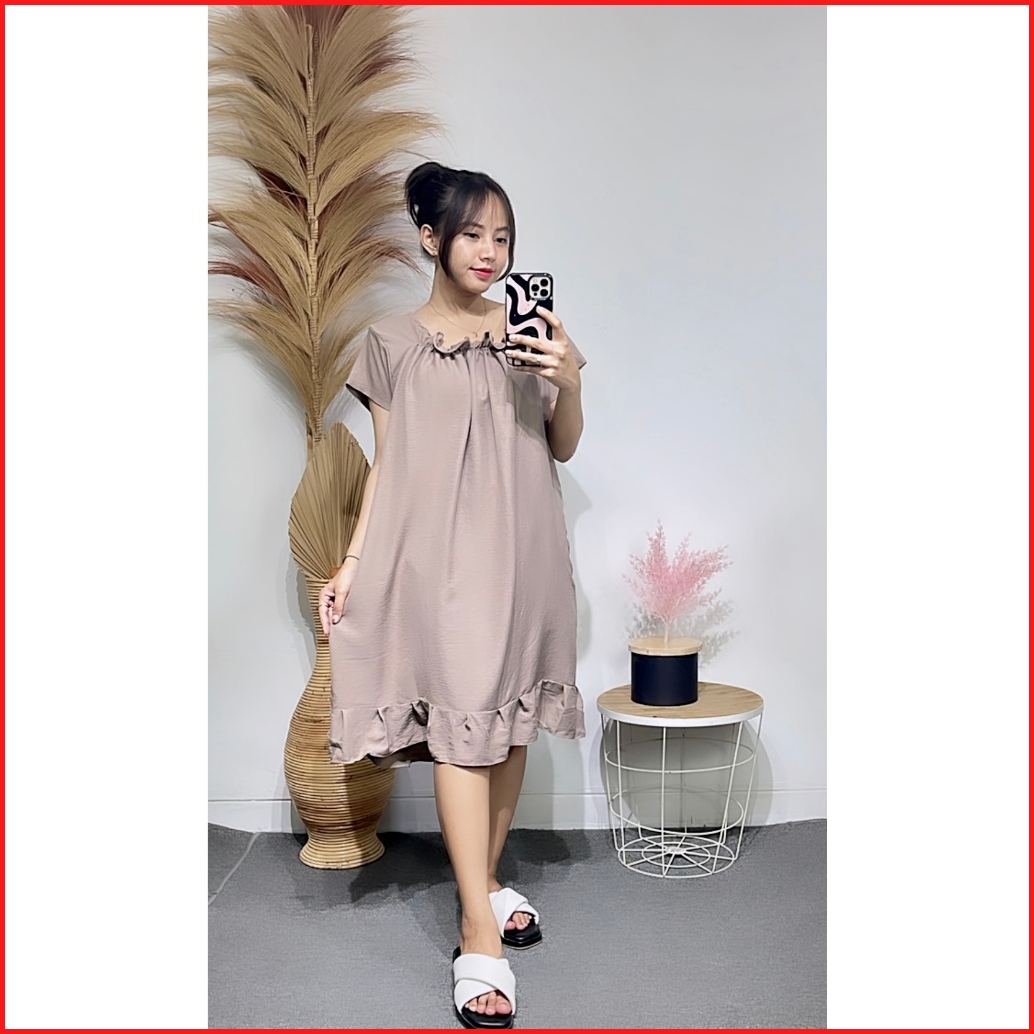 Rx Fashion - Daster Dress Fuji Crincle L - Xxl Daster Midi Zara Crincle Dress Airflow Cringkle Premium -pn