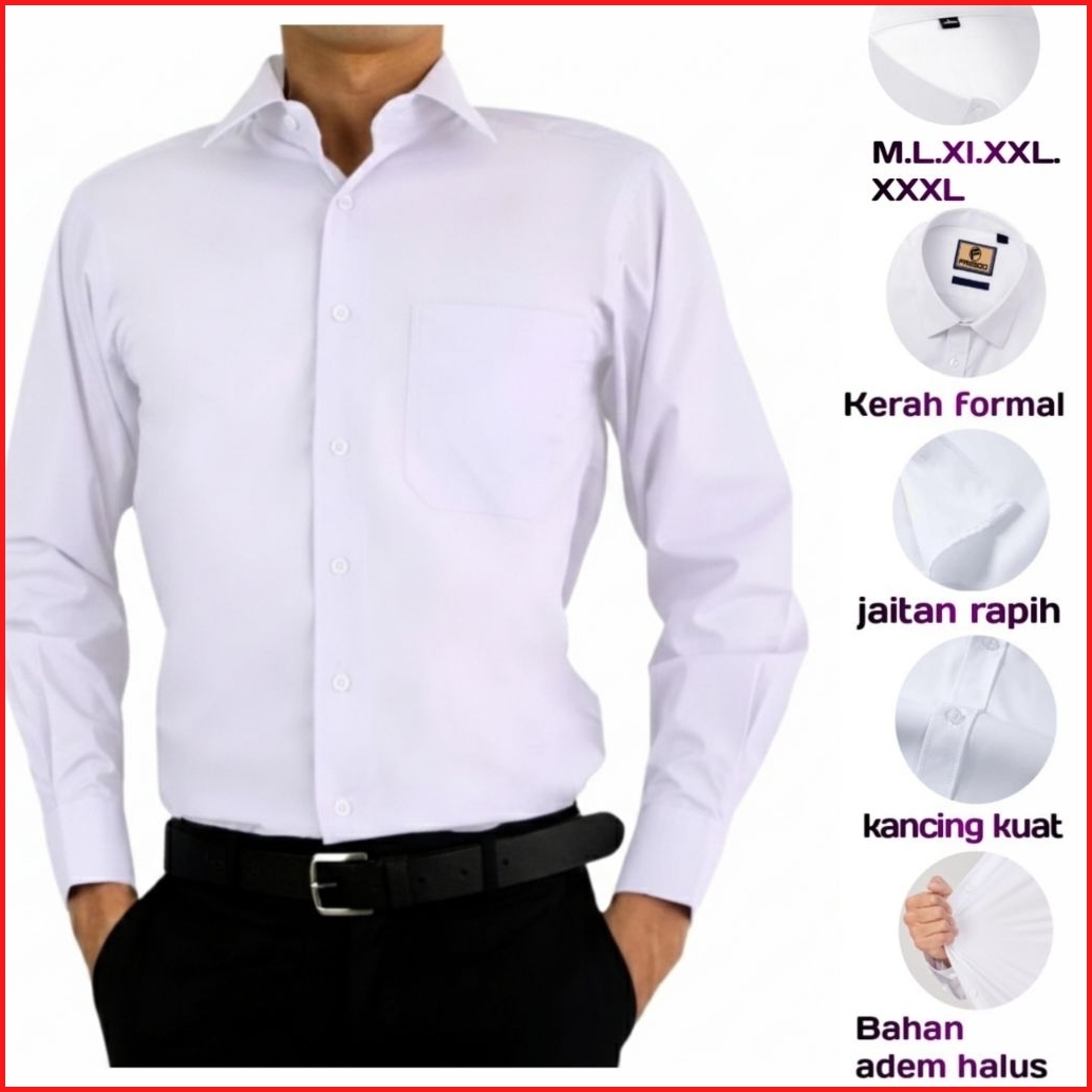 Kemeja Putih Polos Pria Slimfit Kemeja Formal Polos Putih Hitam Pria Dewasa Lengan Panjang