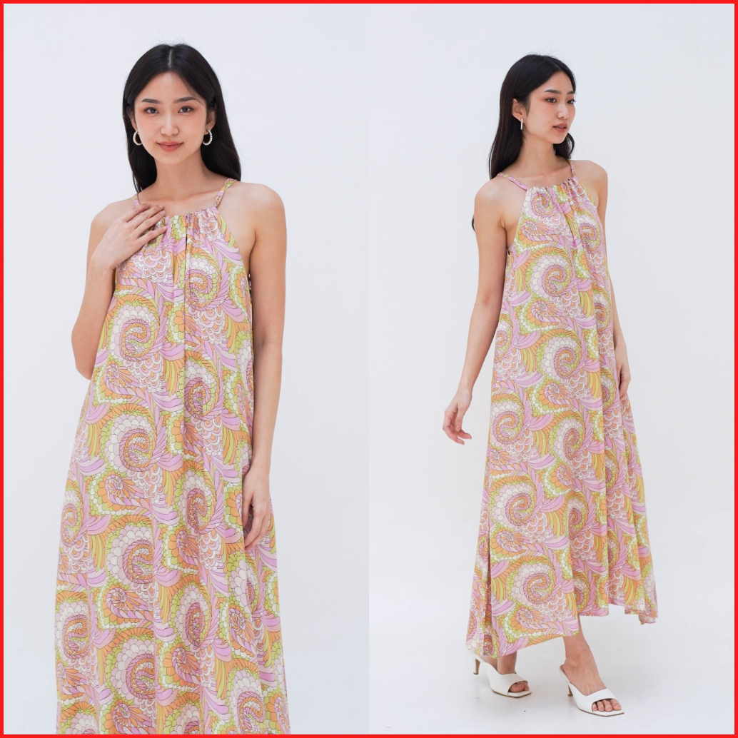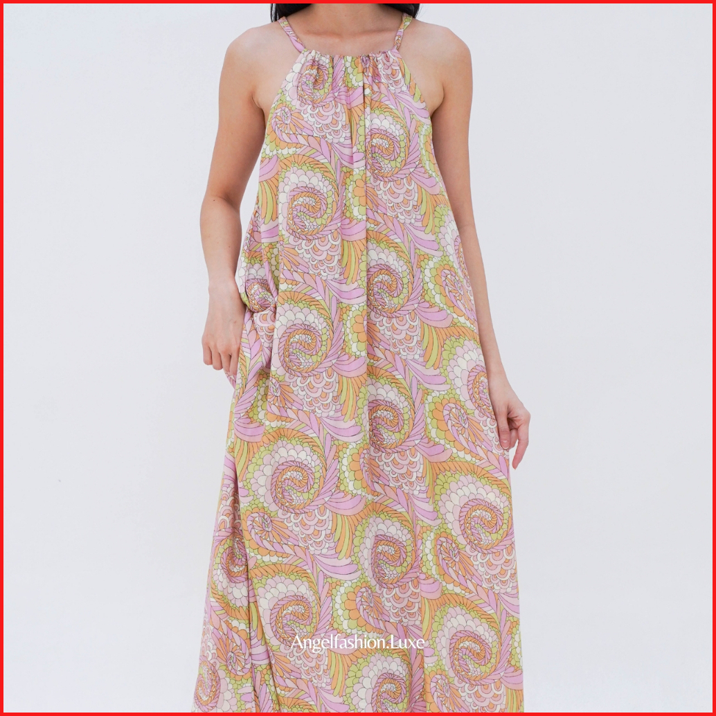 Long Dress Sleeveless Wanita Dress Tanpa Lengan Korean Style Bahan Rayon Motif Kekinian