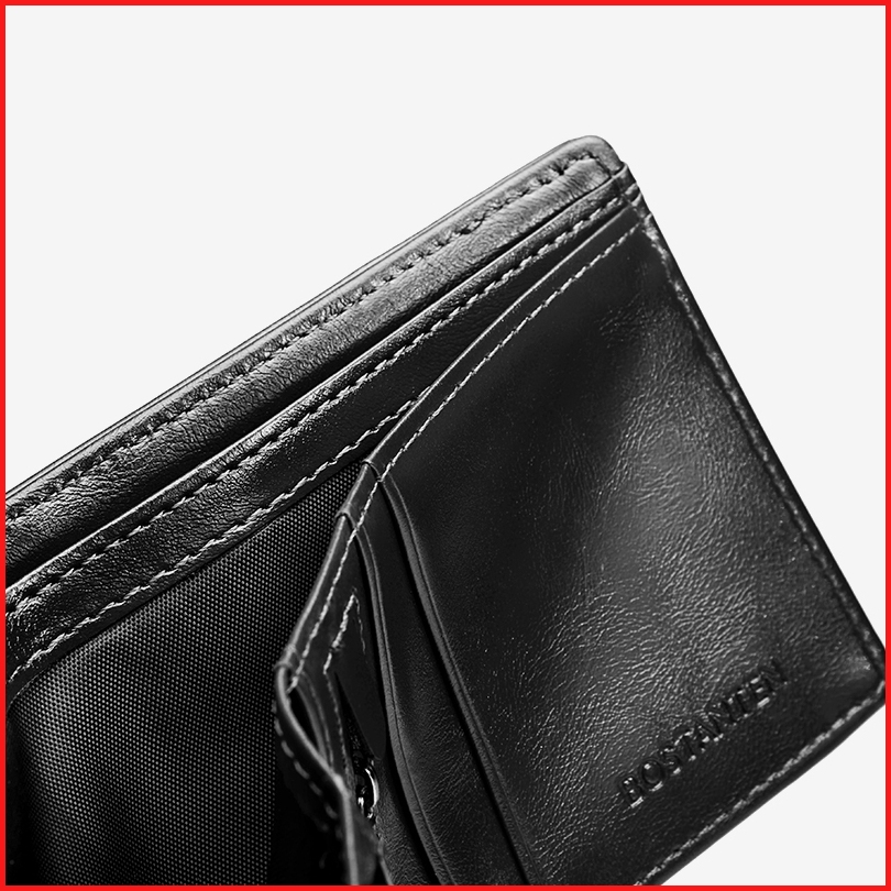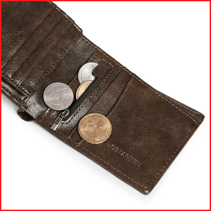 Bostanten Dompet Lipat Pria Koin Ritleting Bahan Kulit Pu Hitam Kopi Coklat