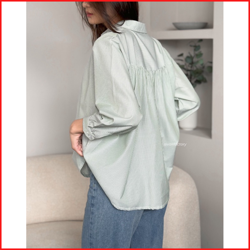 Sivali Maeve Shirt - Stripe Shirt - Kemeja Salur Garis Oversized Shirt - Atasan Wanita Lengan Panjang 079
