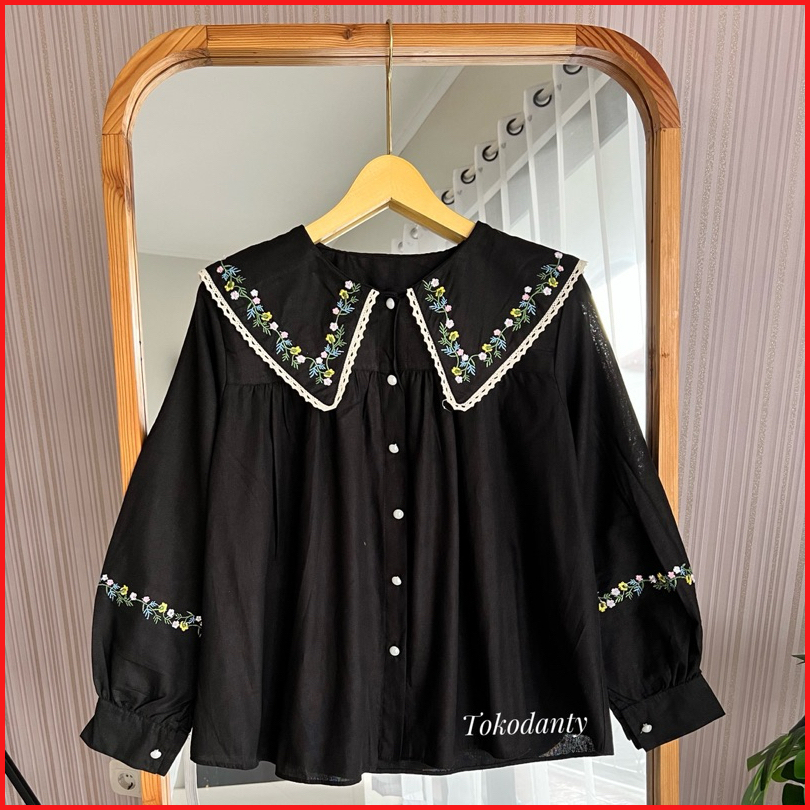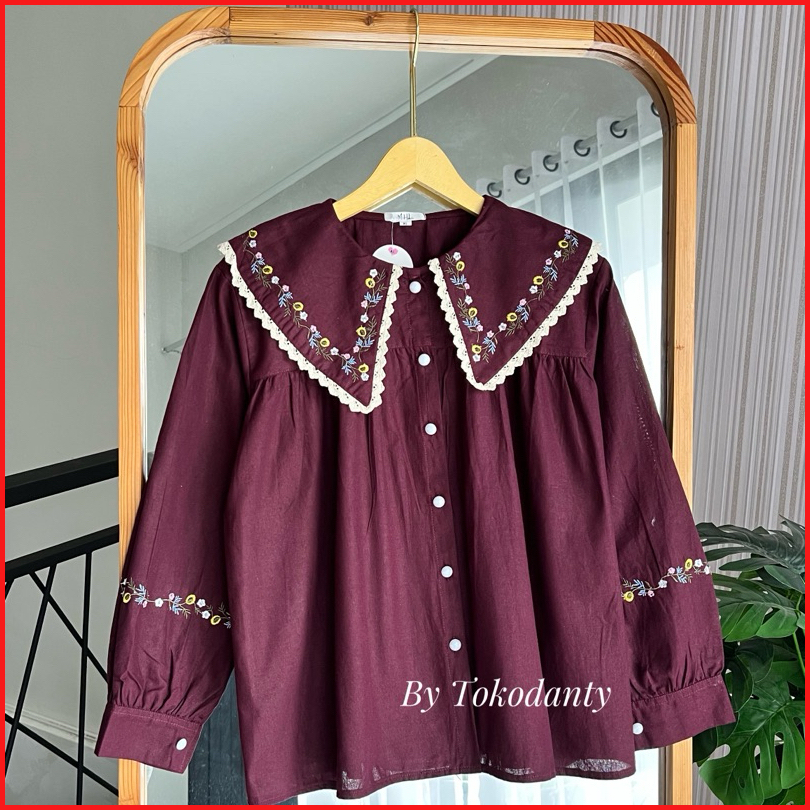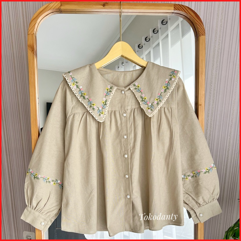 Atasan Kemeja Linen Bordir Lengan Panjang - Lumina