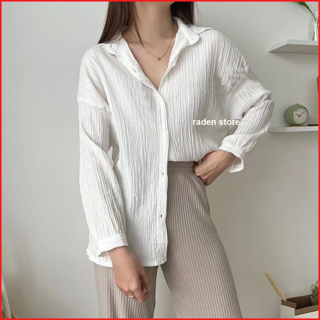 Kemeja Wanita Oversize - Basic Shirt Kemeja Polos Ha-ri Shirt Blouse Atasan Wanita Lady Crush