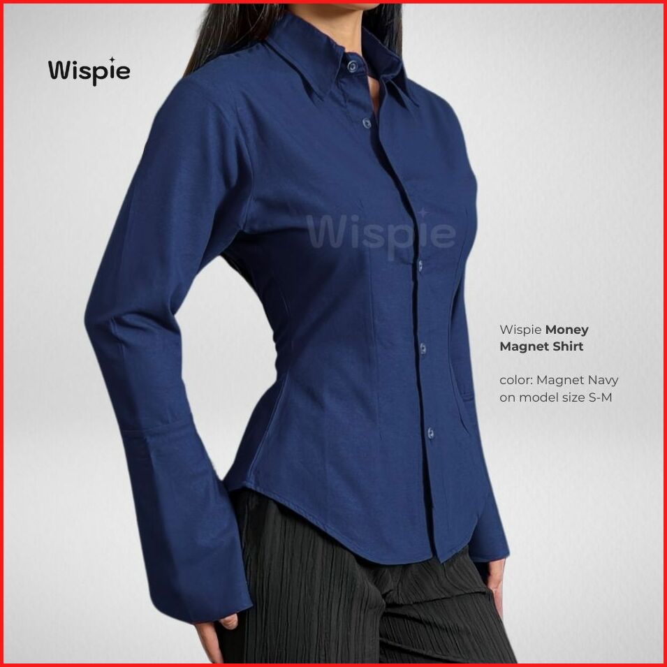 Wispie Money Magnet Fitted Shirt Kemeja Kerja Wanita Press Body Pinstripe Salur Pink Biru Berkaret