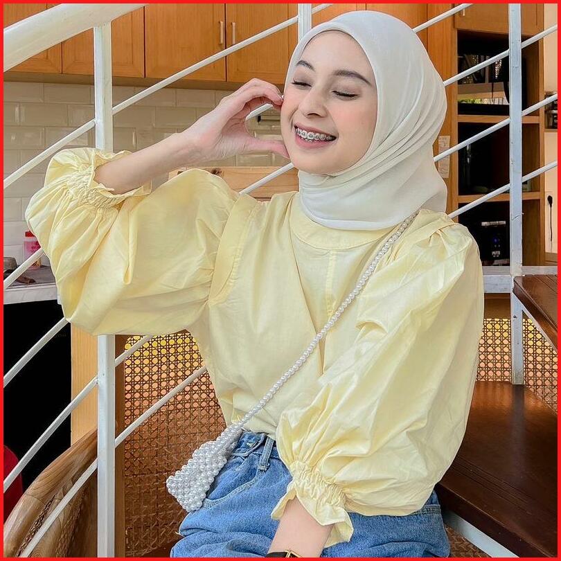 Moni Blouse Katun Linen - Blouse Puffy Lengan Balon - Atasan Wanita Korean Style