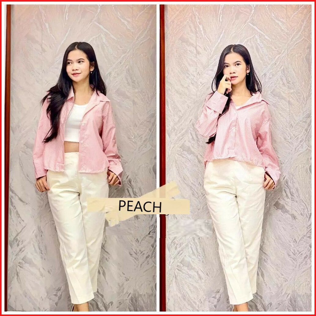 Ziggy Top Stripe Shirt - Kemeja Salur Garis Oversized Crop Shirt Atasan Wanita Lengan Panjang