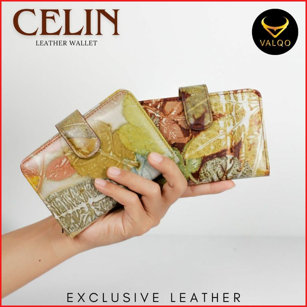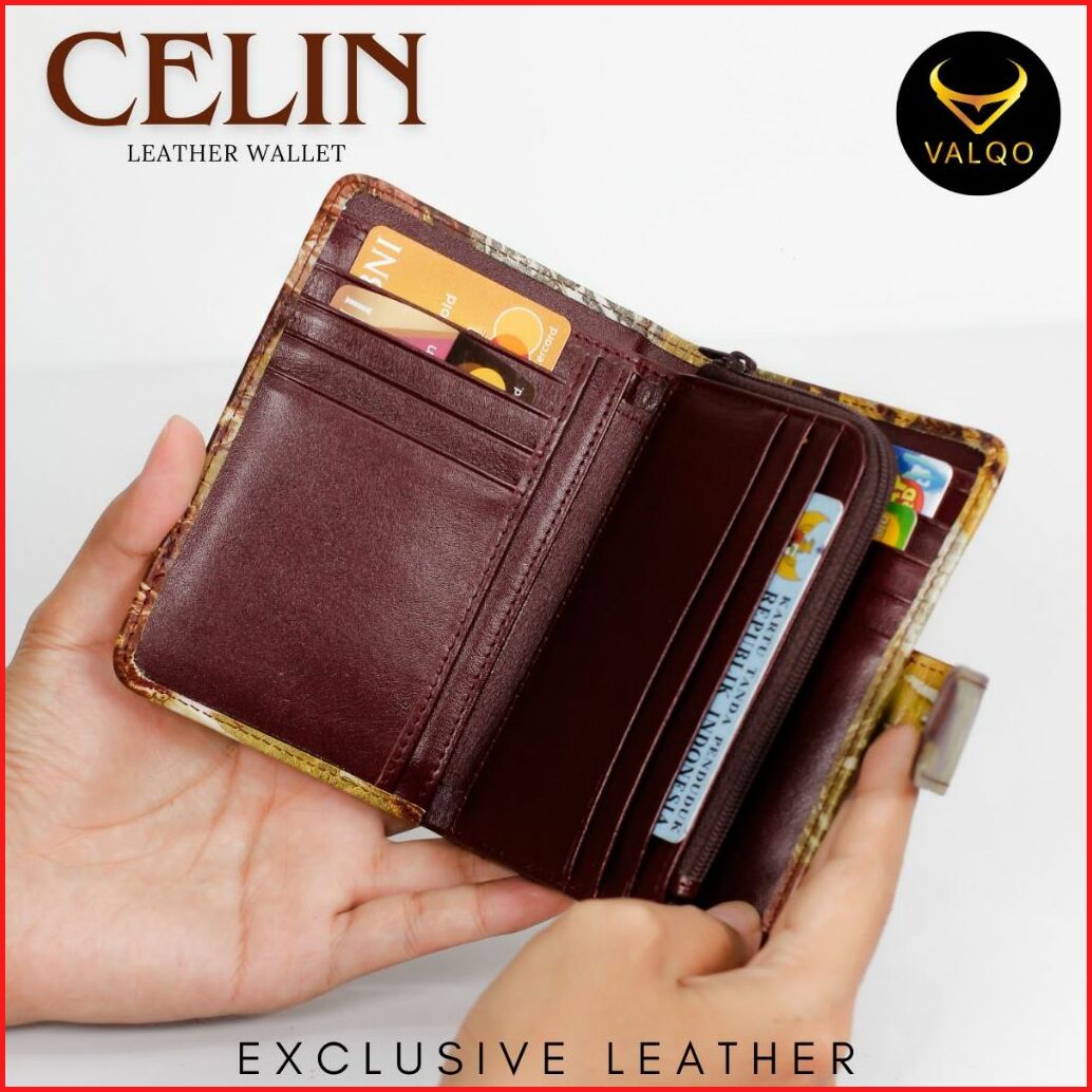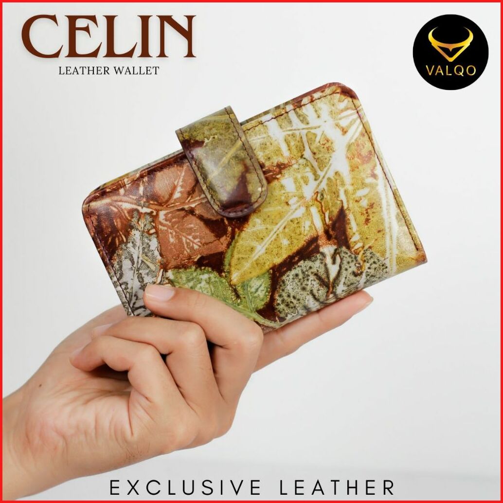 Valqo Celia Ecoprint Dompet Kecil Wanita Kulit Sapi Cewek Perempuan Dompet Pendek Dompet Kartu Dompet Lipat Mini