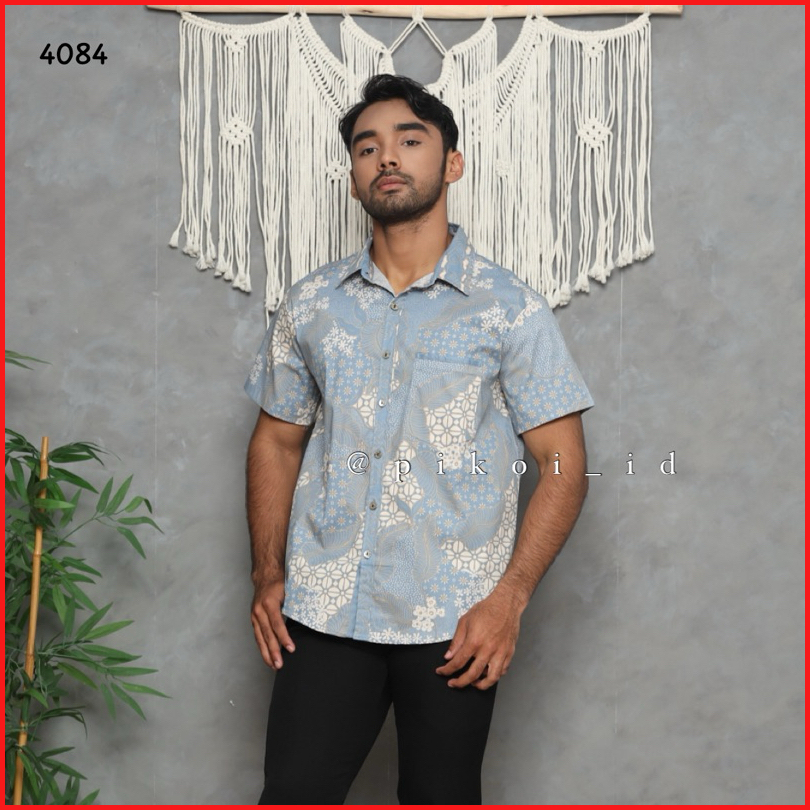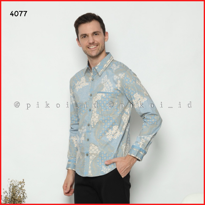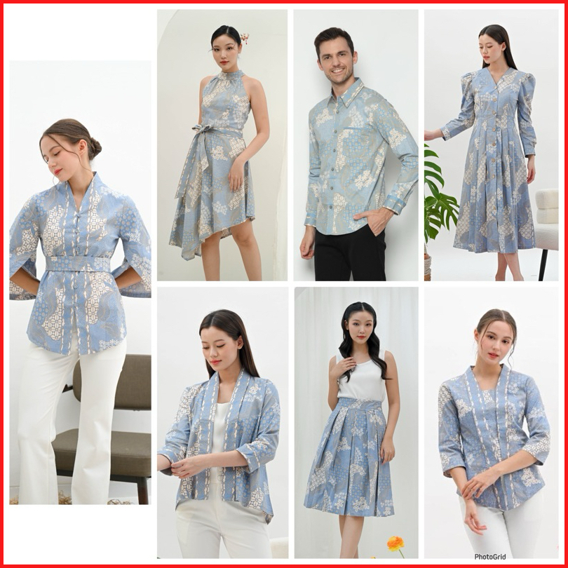 Couple Batik Modern Wanita Pria Warna Biru Pastel Blue Inaya