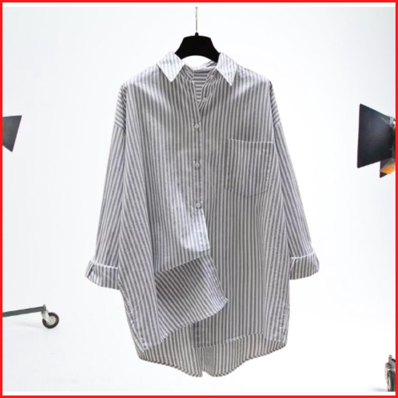 Kemeja Salur Wanita Kemeja Saku Baju Atasan Remaja Dewasa Outfit Kekinian Kemeja Terlaris