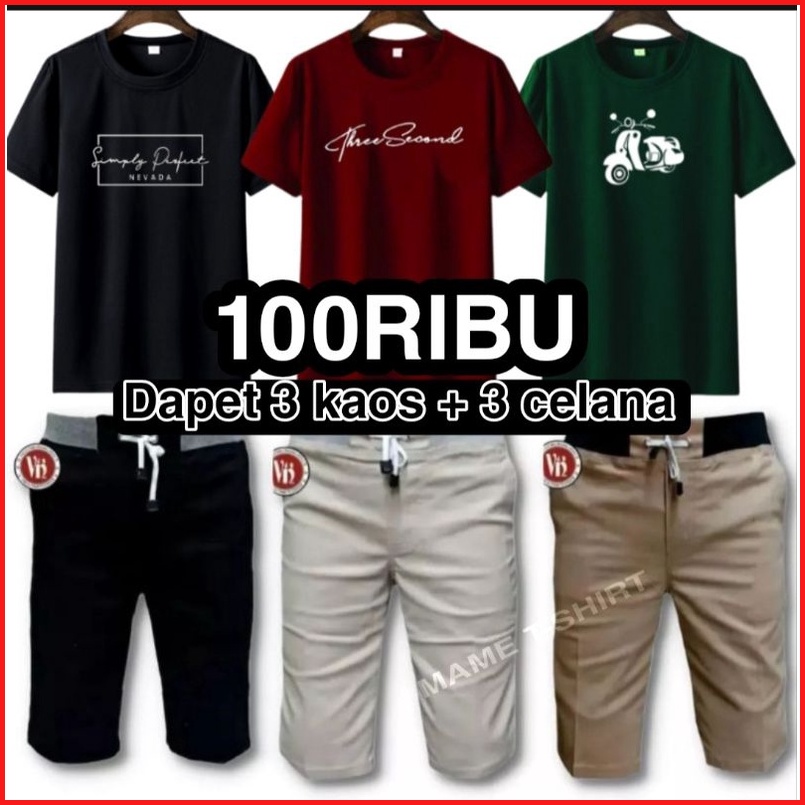Promo 100 Rb Dapet 3 Kaos 3 Celana Chinos Pendek