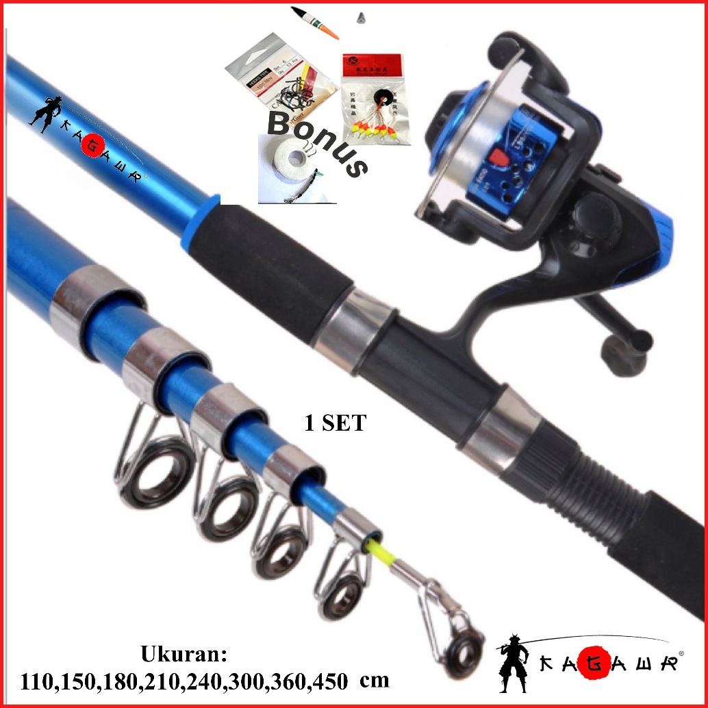 Kagawa Joran Pancing Set Lengkap Dengan Bonus Reel 200 Dan Senar 50m