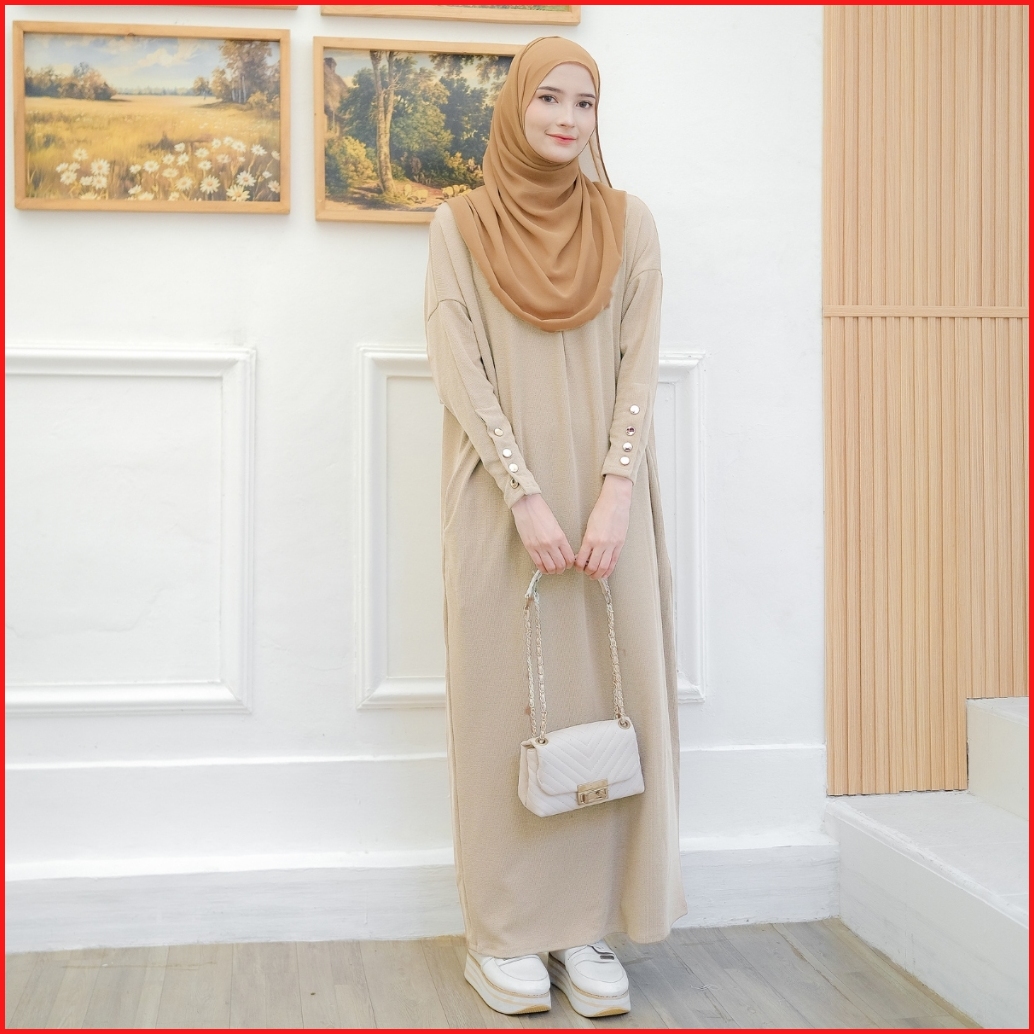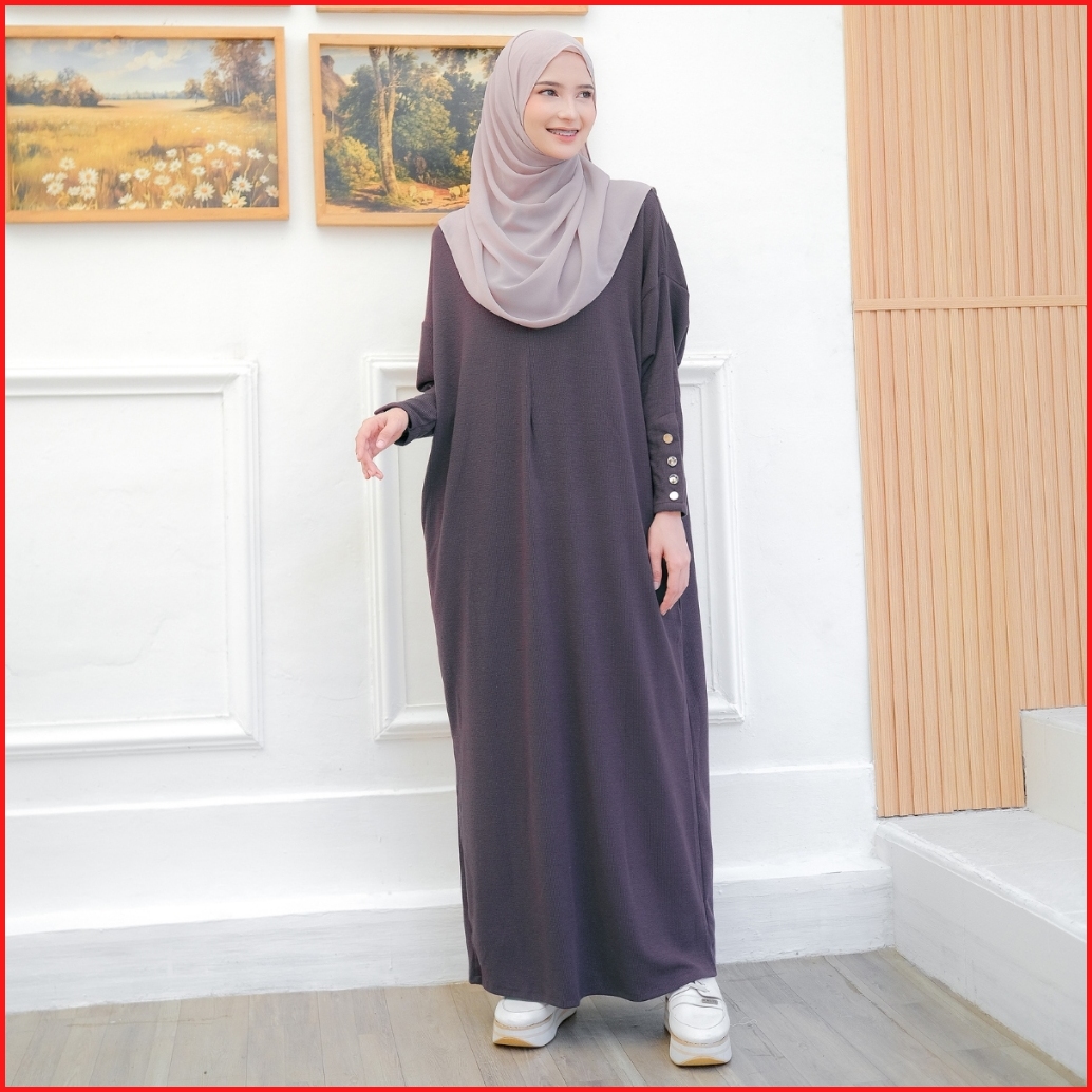 Outfiks Abaya Gamis Batwing Plisket Knit Dress Busui Umroh Lebaran Haji Daily V1