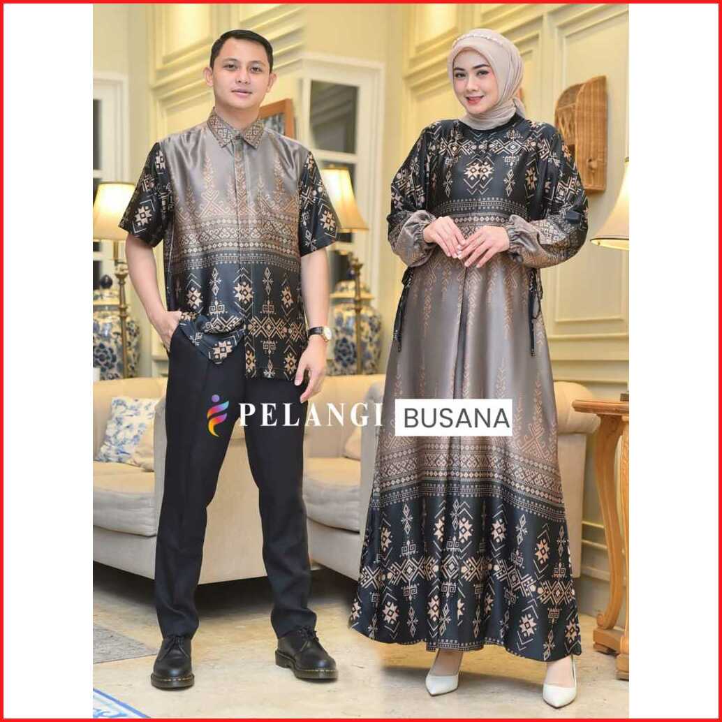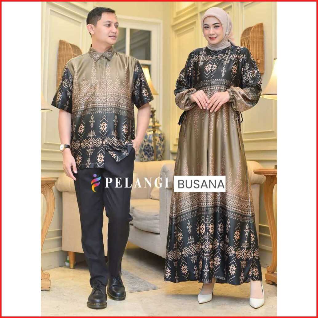 Couple Dress Syameera Bahan Silk Premium Set Pasangan Atasan Kemeja Gamis Motif Elegan Silk Premium Gamis Couple Pesta K