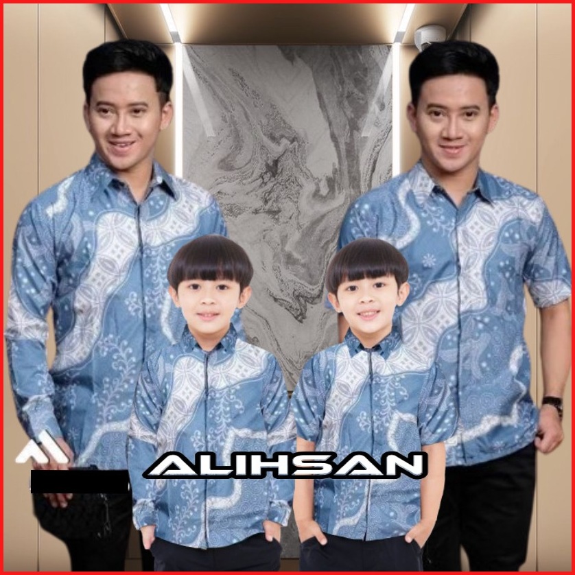 Terbaru Couple Batik Ayah Dan Anak Laki Laki Kemeja Batik Pria Dewasa Dan Anak Laki Laki Modern Terbaru Warna Ice Blue