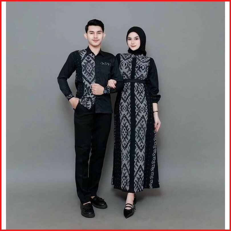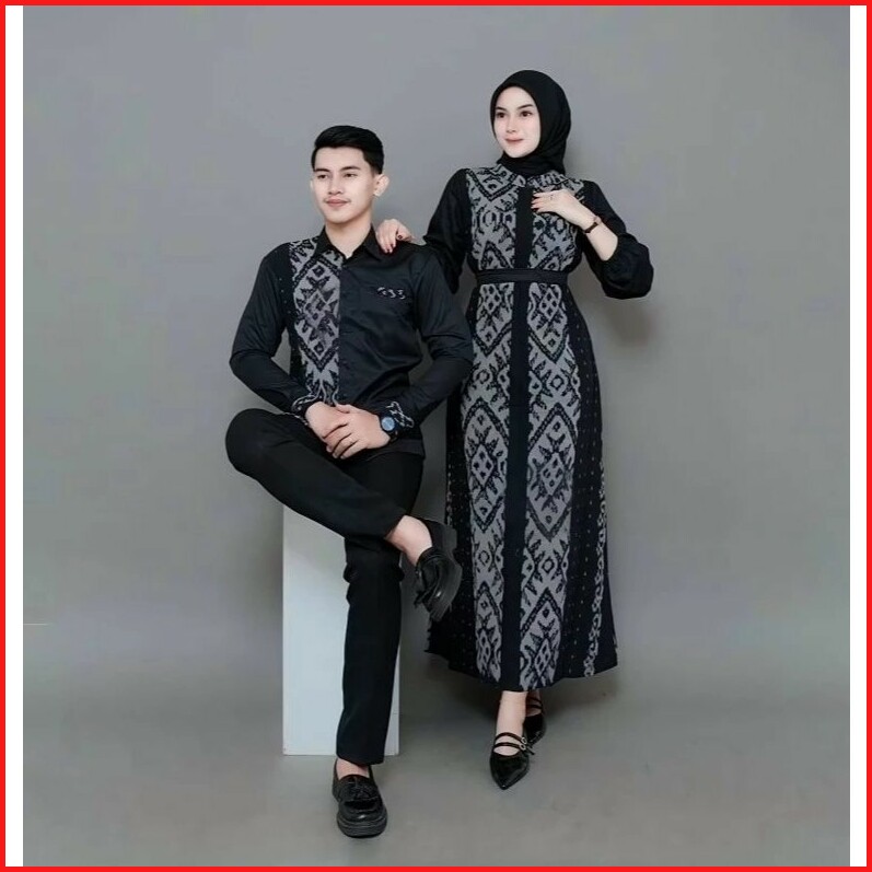 Aina Ethnic - Set Couple Belvia Black Belvia Dress Kondangan Belvia Black Couple Baju Kondangan