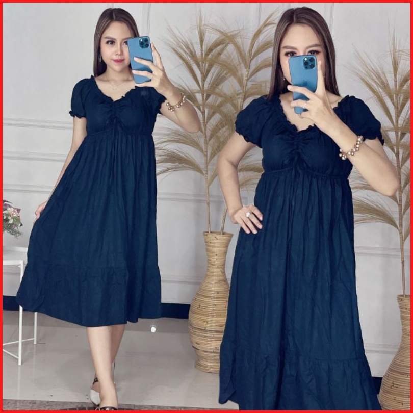 Daster Serut Dada Terbaru Busui Bumil Dress Elsa Serut Dada Rayon Ld 110-120