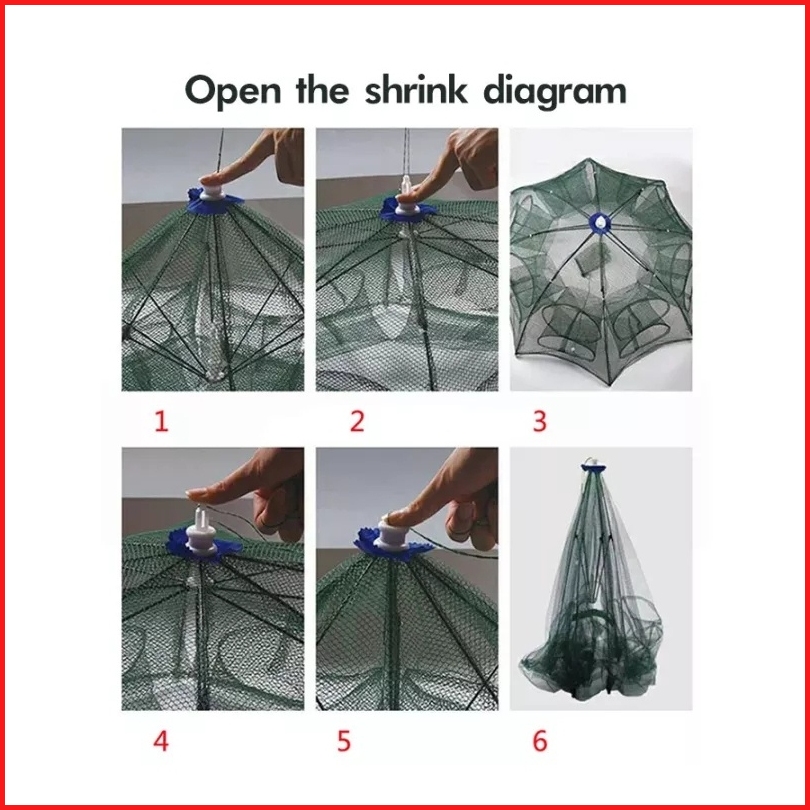 8 Lubangtrap Cage Umbrella Net Fish Ikan Udang Kepiting Lele Lobster Sungai Laut Danau Fish Trap Net