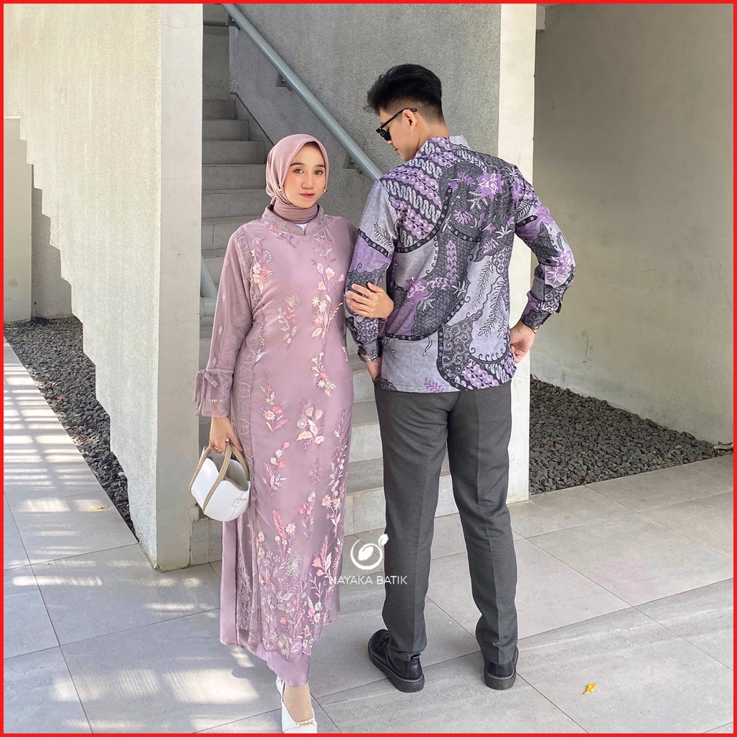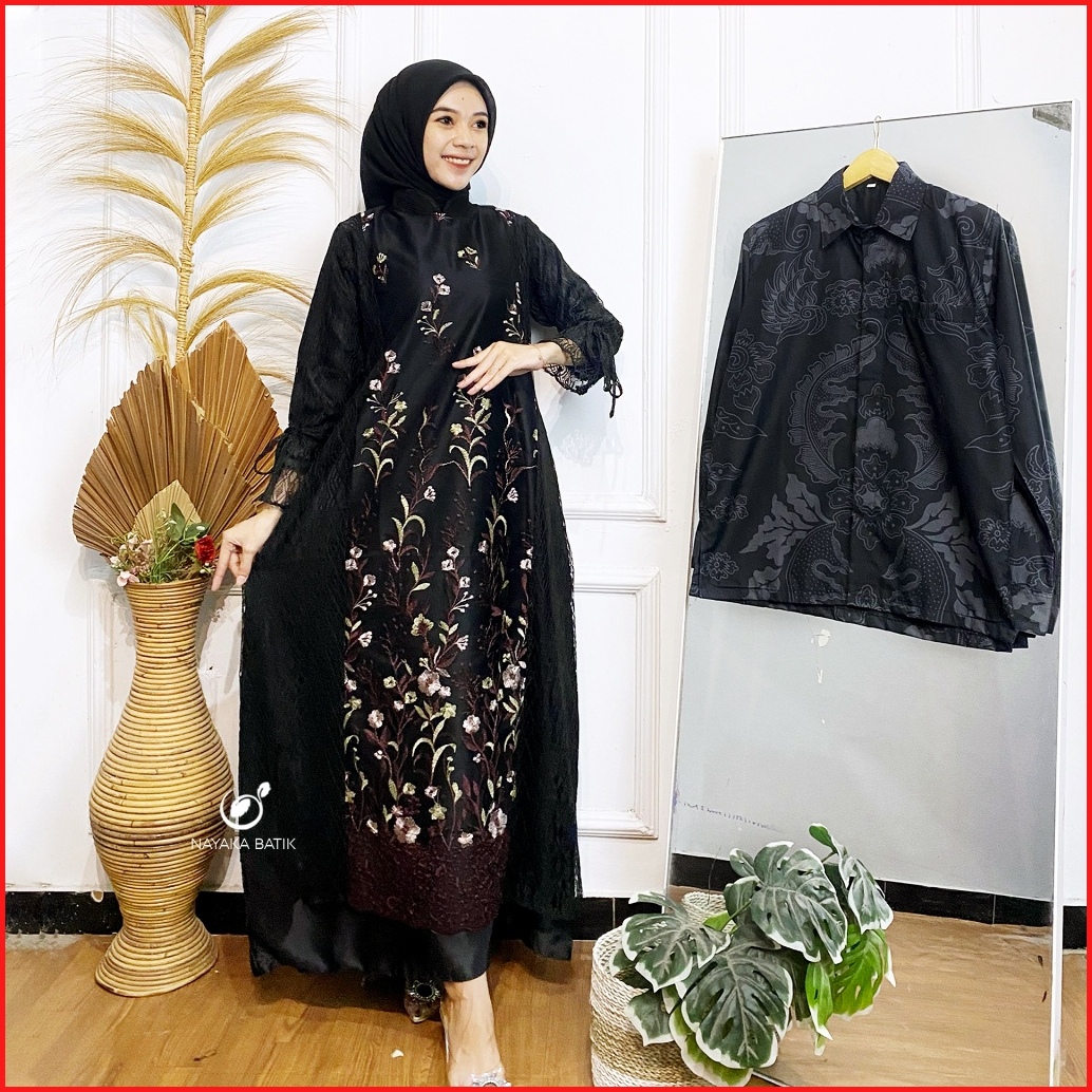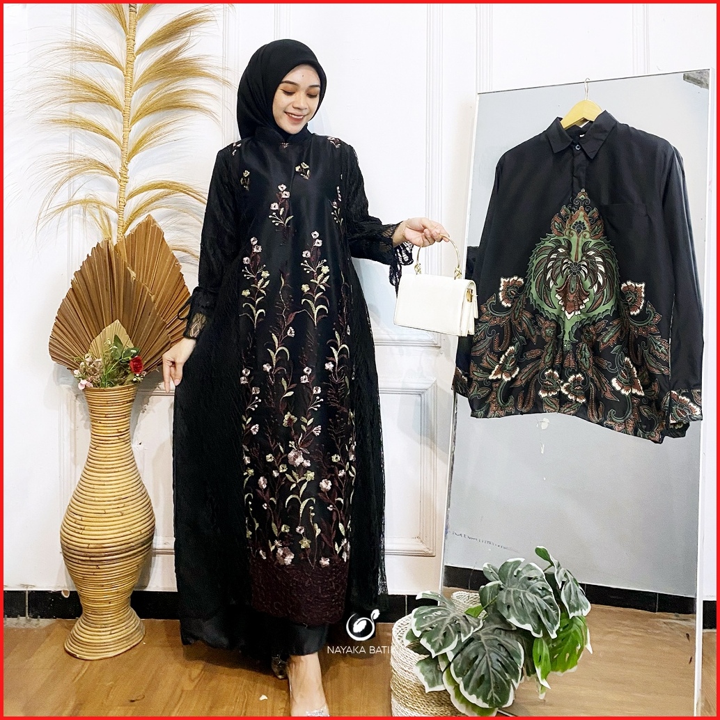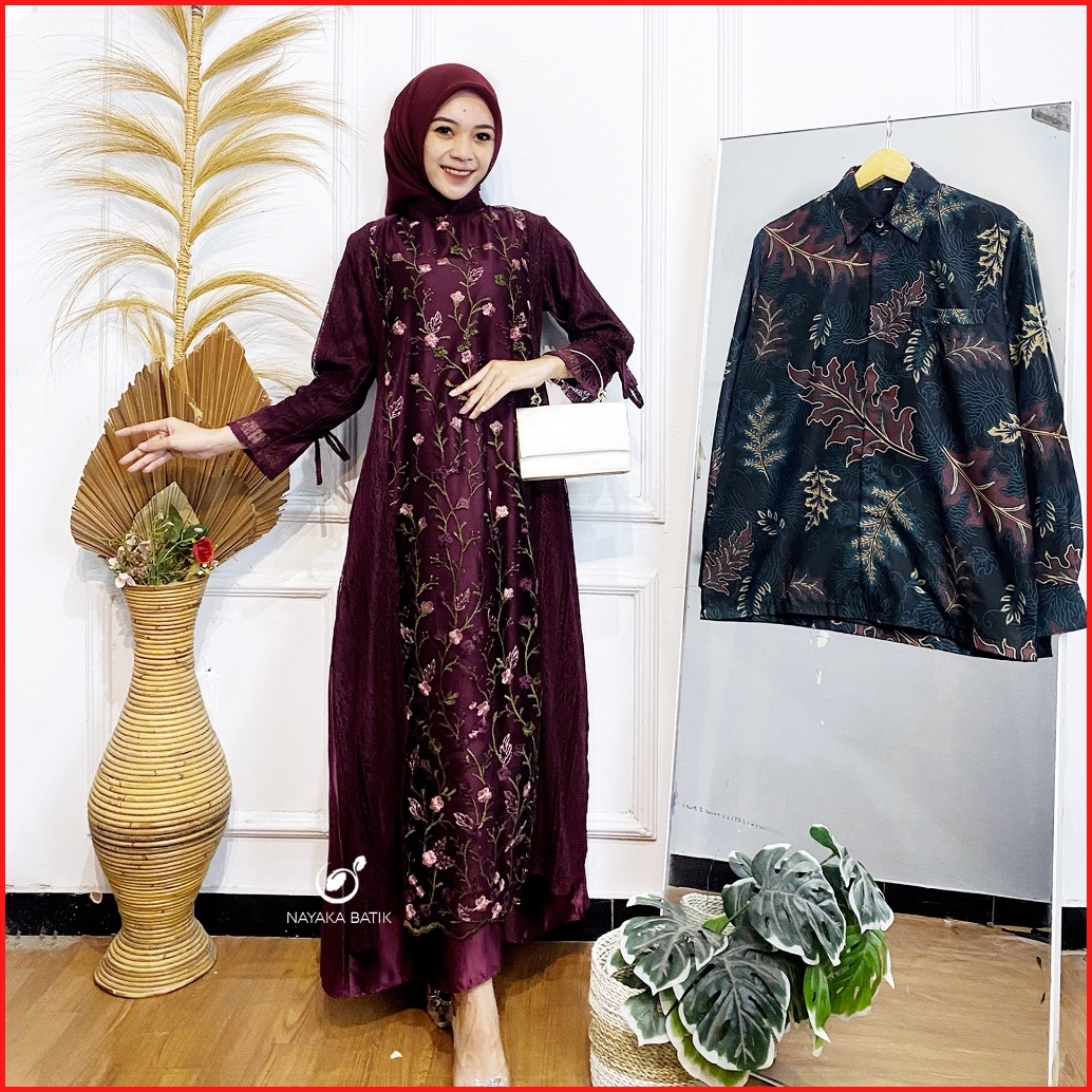 Nayaka Batik Furing Series - Couple Gamis Modern Aqila Dress Lebaran 2025 Satin Halus Mix Tulle Garden Kombi Centili Kem