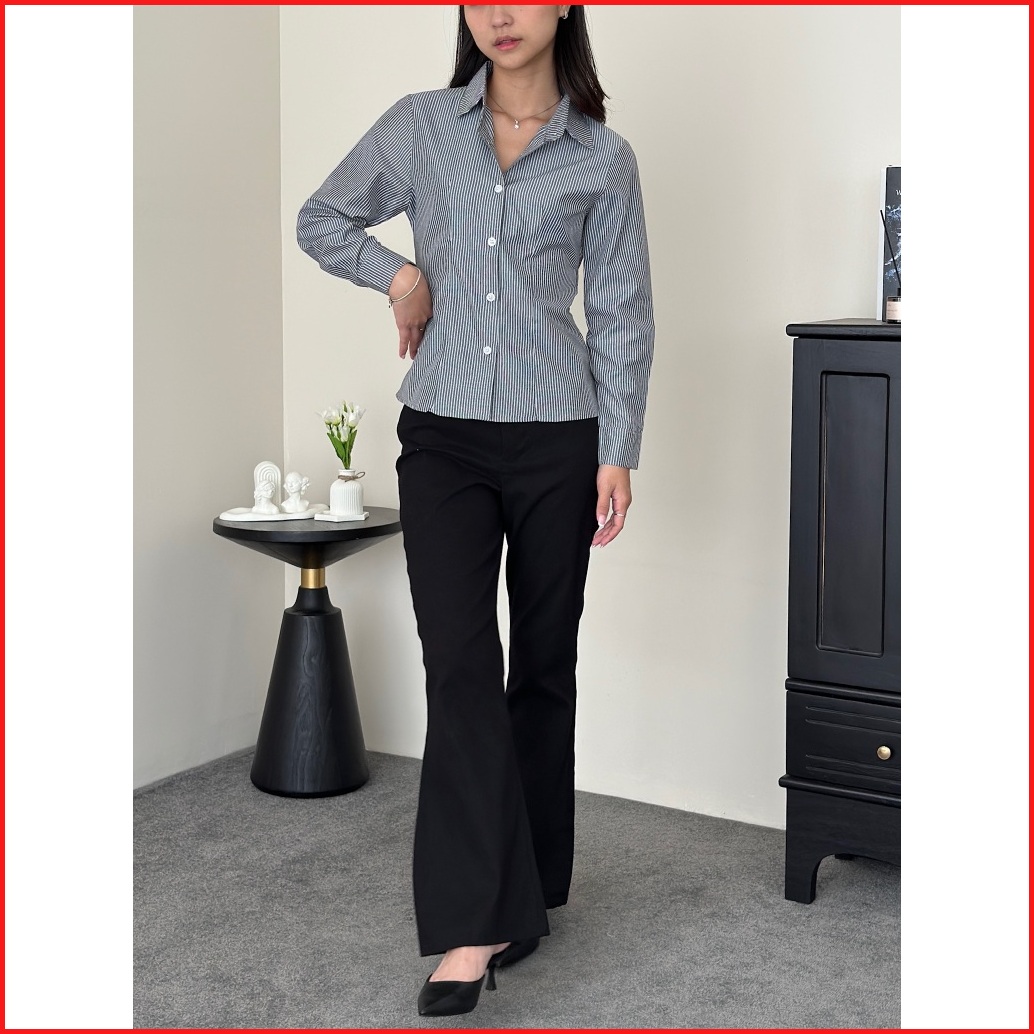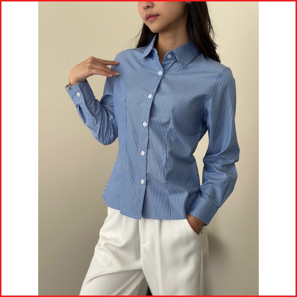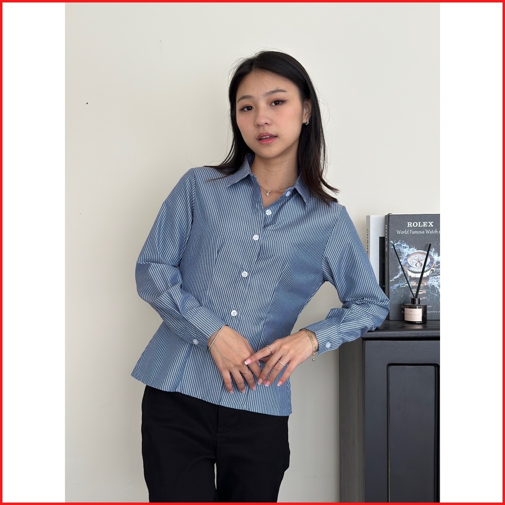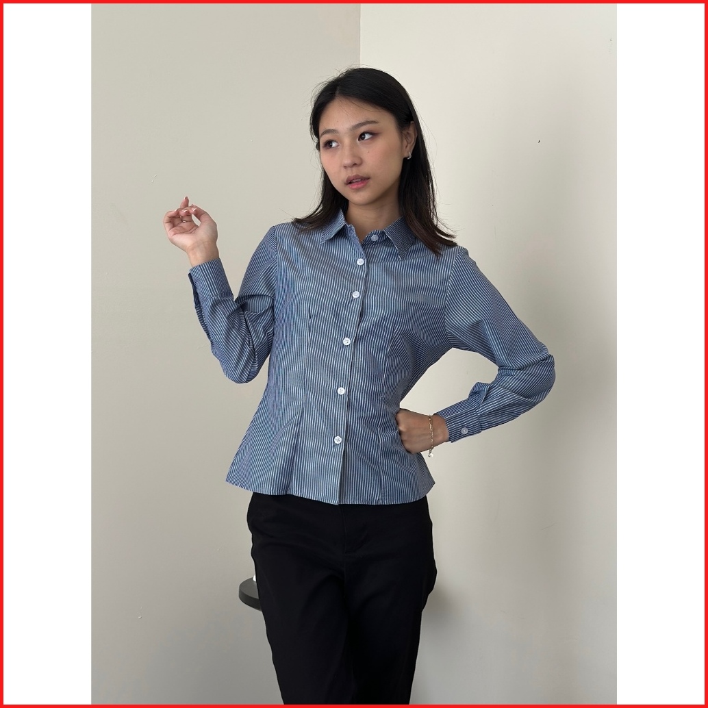 Asoka Lanie Fitted Shirt 1319 - Kemeja Salur Katun Kantor Wanita - Fitted Stripe Shirt Slim Fit Long Sleeve