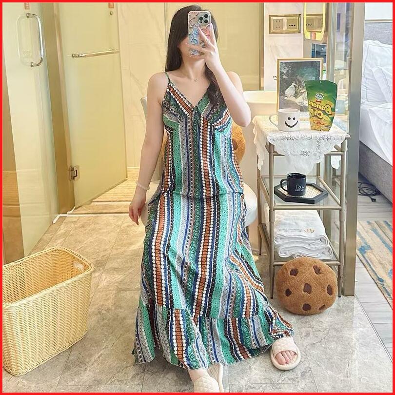 Kinie Daster Rayon Wanita Bahan Viscose Tali Satu Set Panjang Impor