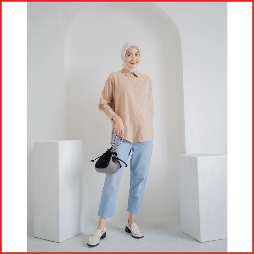 Kemeja Wanita Oversize Linen Korean Minimalis Retro