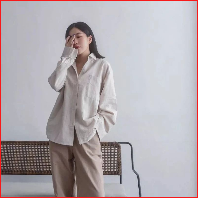 Atasan Linen Kemeja Wanita Linen Oversize Model Olivia Shirt Bahan Linen Premium