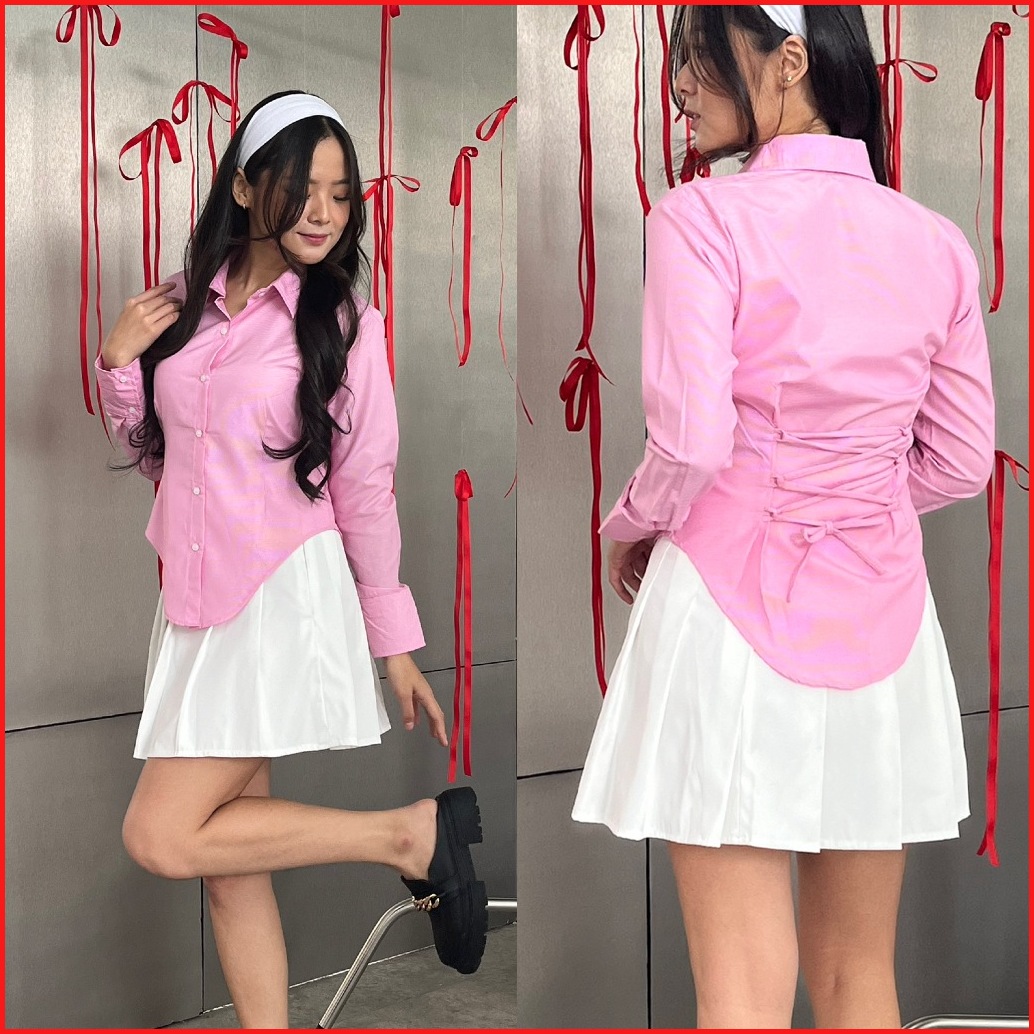 Missie - Selena Kemeja Blose Wanita Slim Fit Long Sleeve Tali Belakang