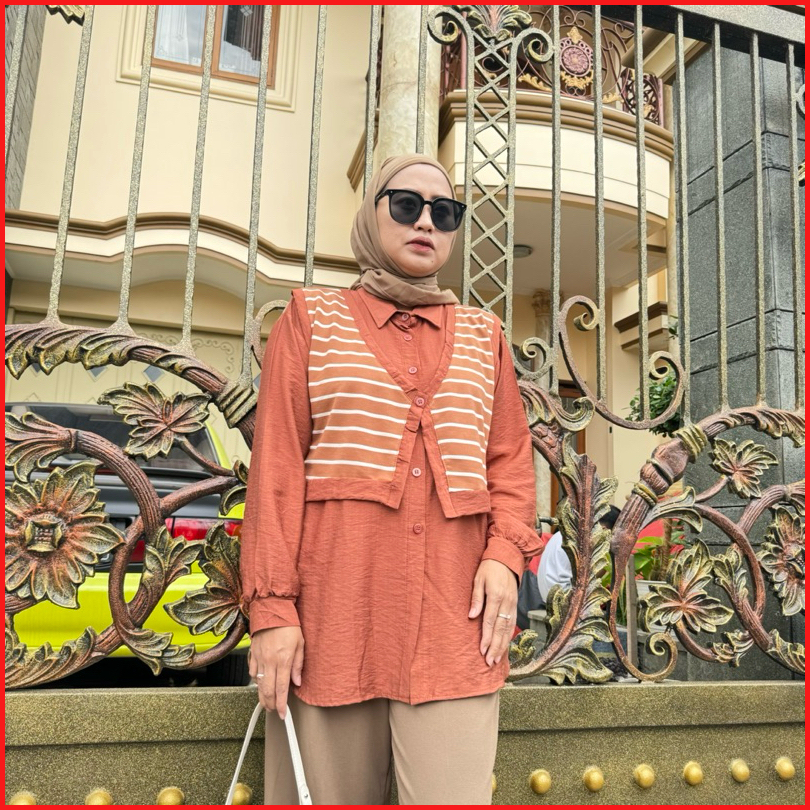 Agnes Kemeja Polo Linen Kombi Salur Wanita