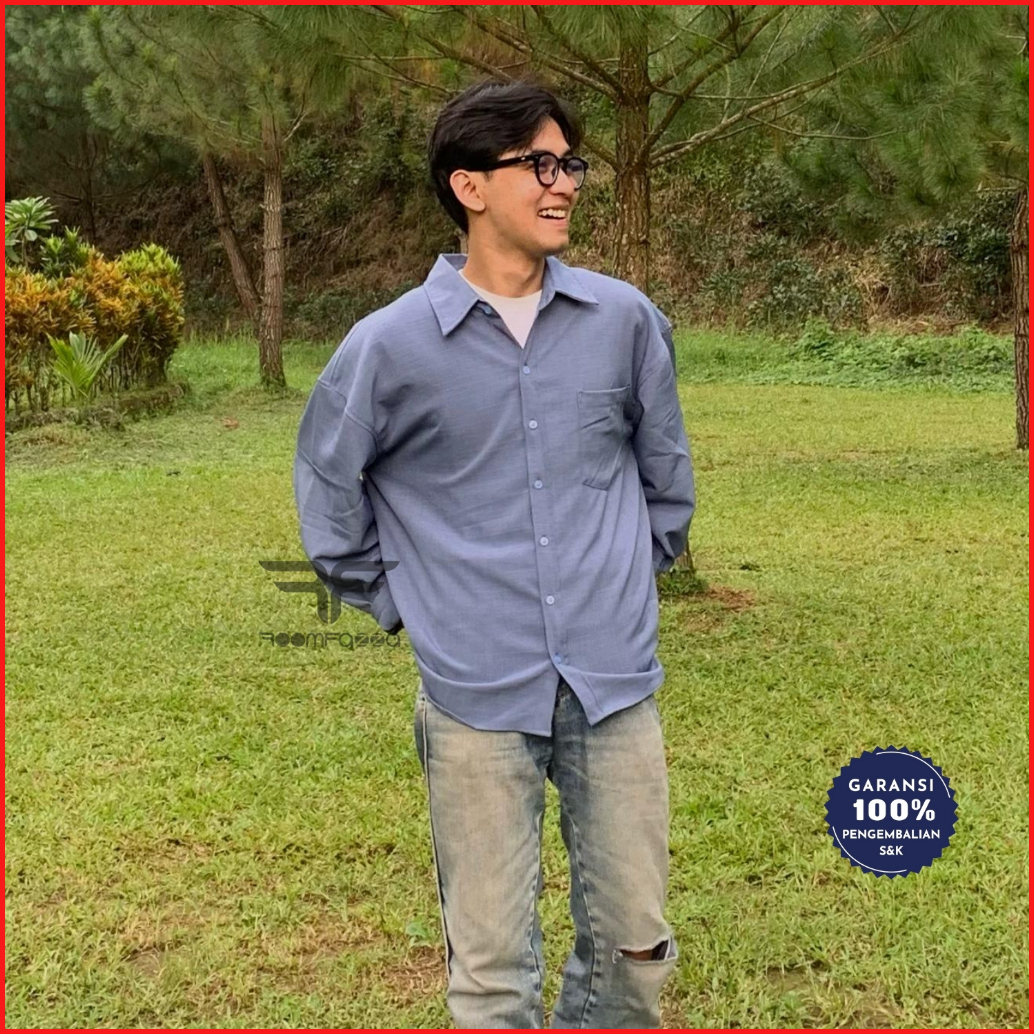 Roomfazza Kemeja Lengan Panjang Oversized Pria Kemeja Kasual Kemeja Polos Kemeja Pria Kemeja Oversize
