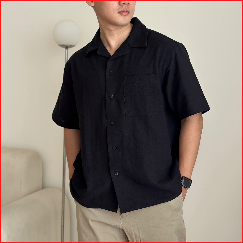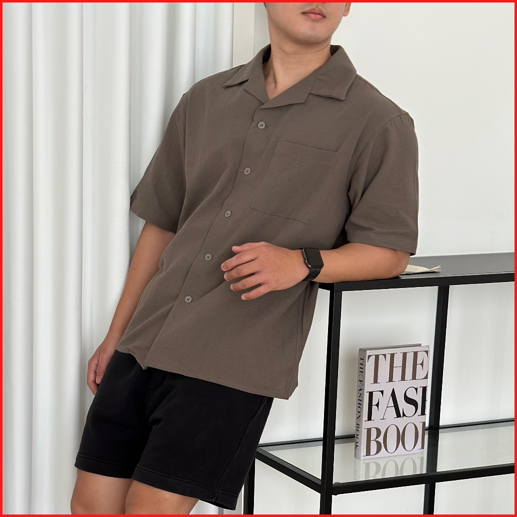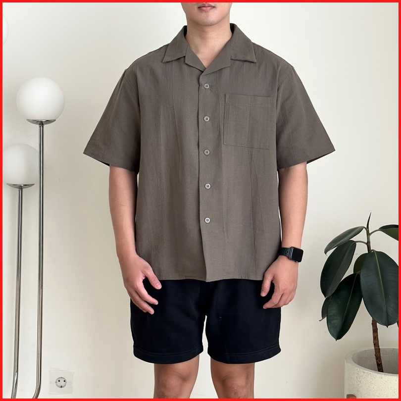 Cozyclub Cuban Bowling Boxy Oversized Linen Shirt Kemeja Linen Bowling Polos Pria Kerah Terbuka Lengan Pendek 81