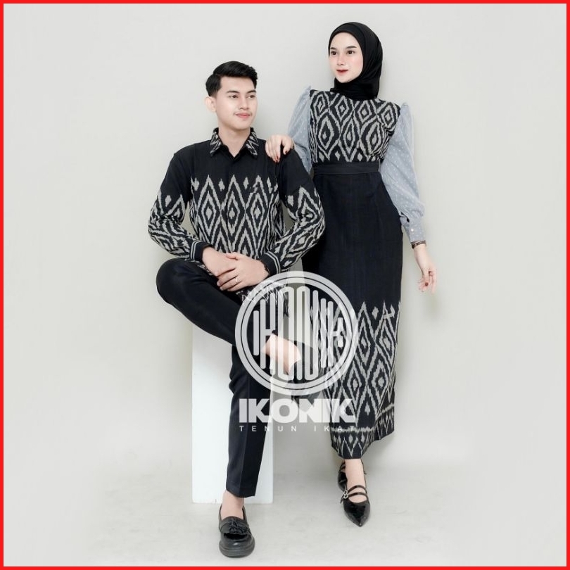 Ikonik Baju Tenun Couple Gayatri Black -baju Sarimbit-baju Kondangan