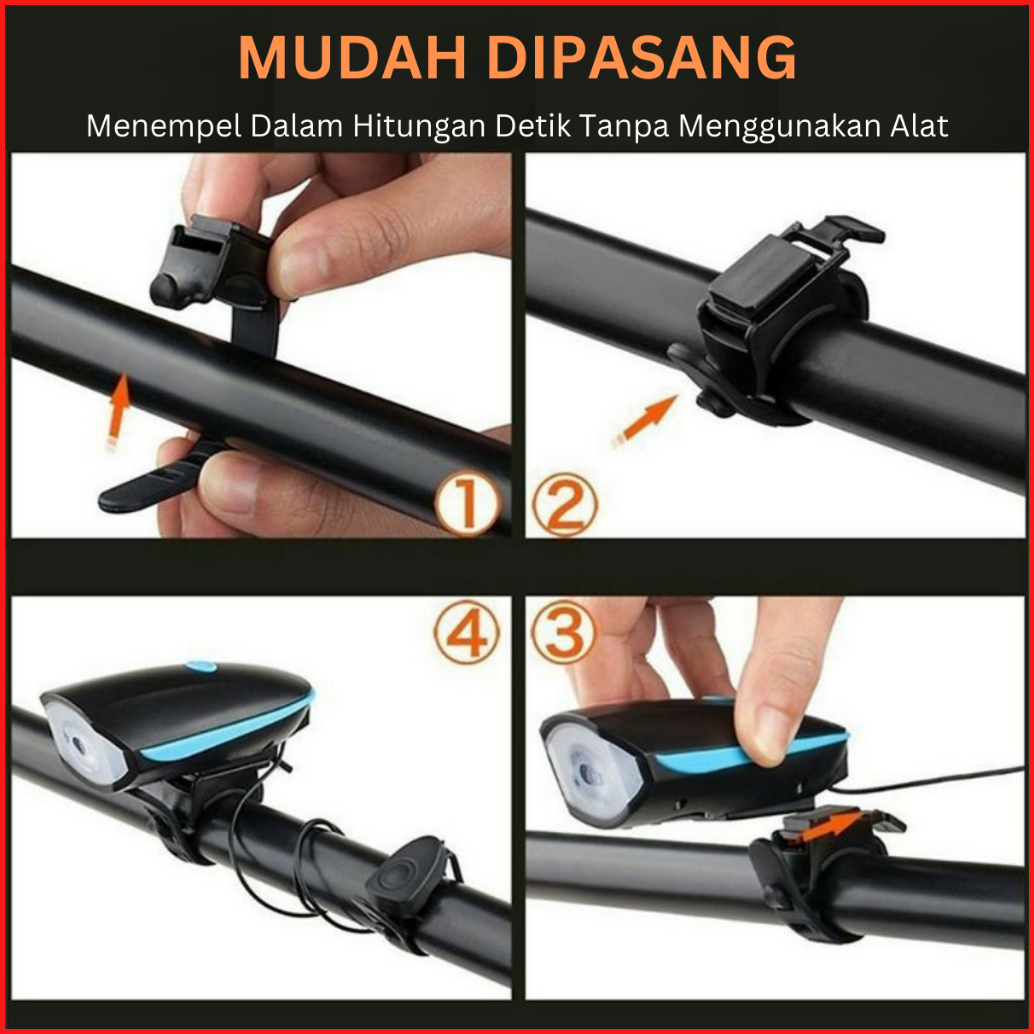 Lampu Sepeda Plus Bel Klakson 7588 Speaker 120db Bike Led Super Terang Usb Rechargeable Waterproof