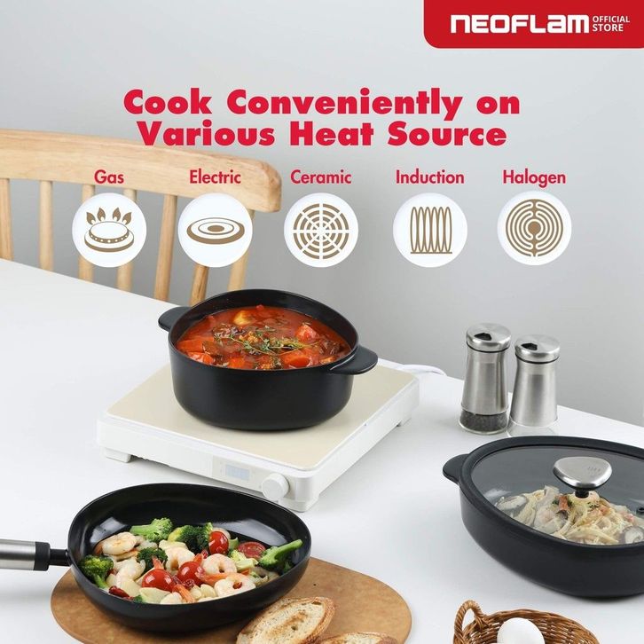 NEOFLAM FIKA APEX Casserole 20cm with Glass Lid Black- Panci Anti Lengket & Tahan Gores, Ceramic Coating