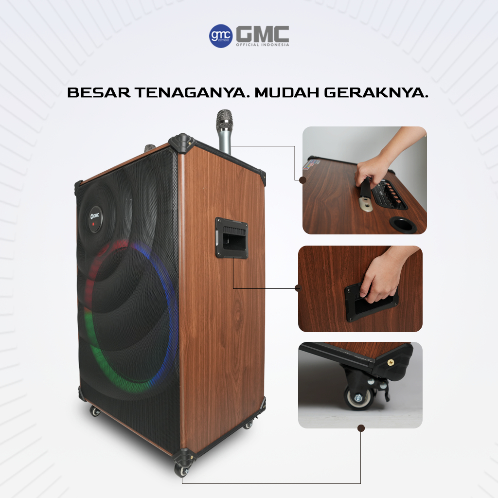 GMC SPEAKER 883J – SPEAKER KARAOKE BLUETOOTH 18” – 160W, 2 MIC WIRELESS, LAMPU LED, USB, AUX, TF