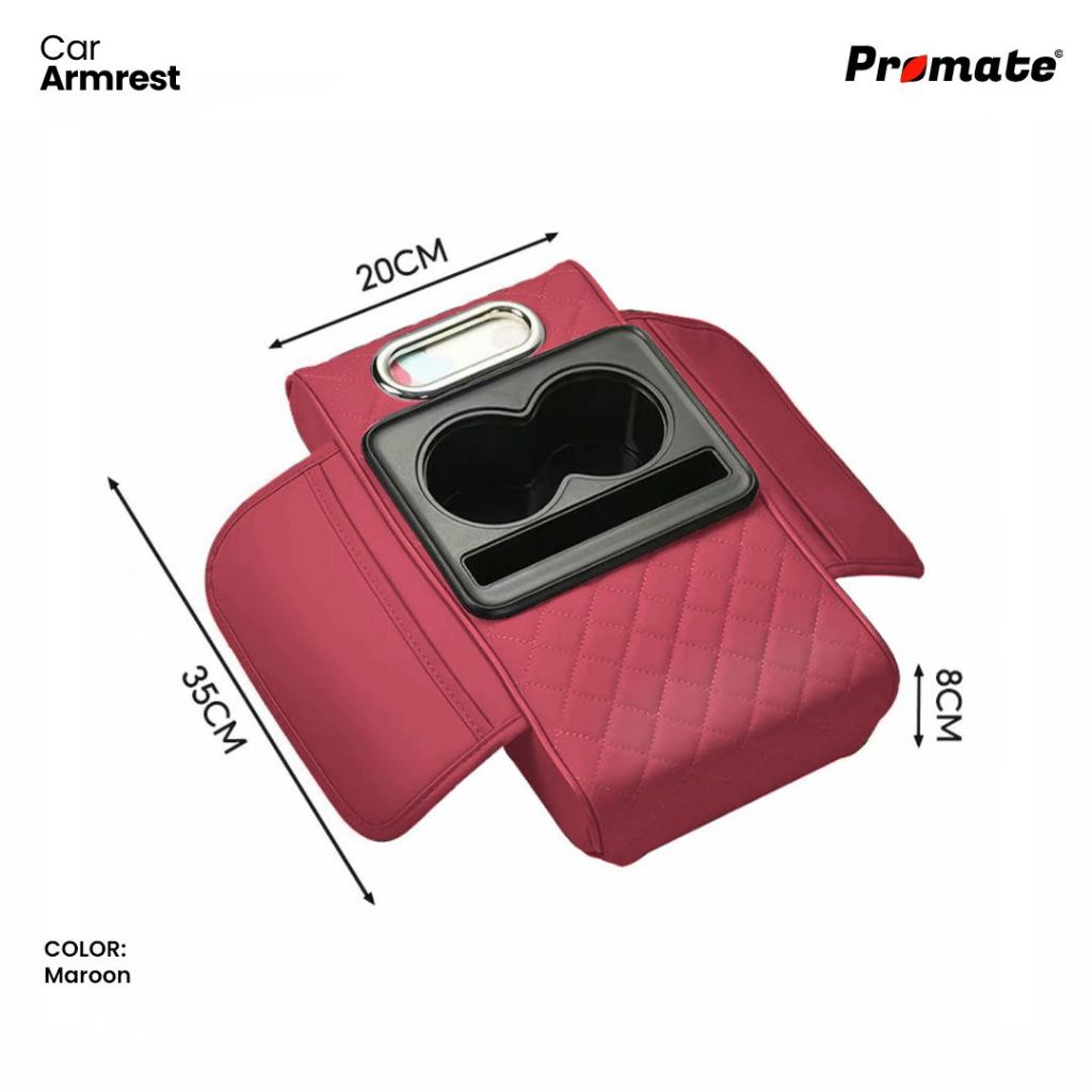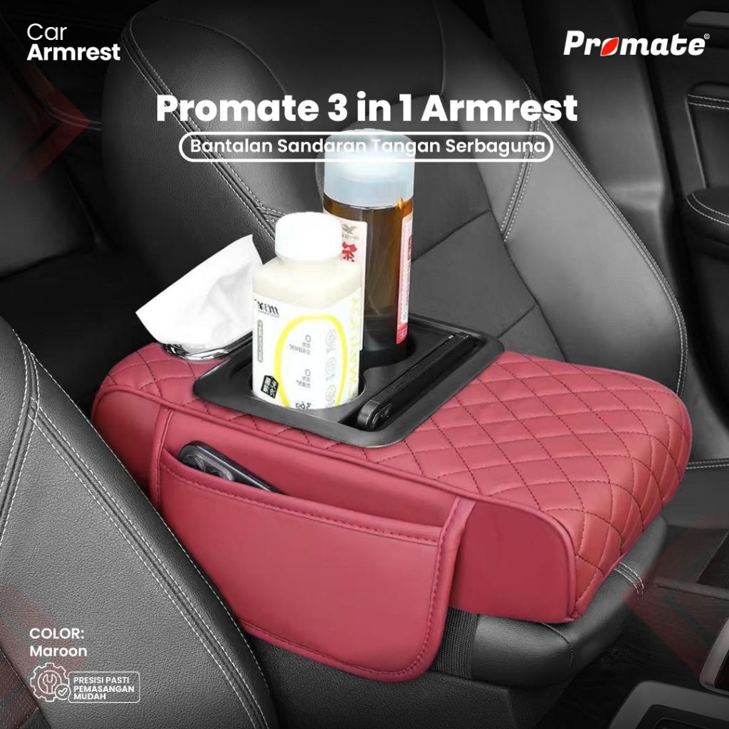 armrest sandaran siku tangan 3in1 promate universal storage box cup holder tempat tisu car bhn kulit
