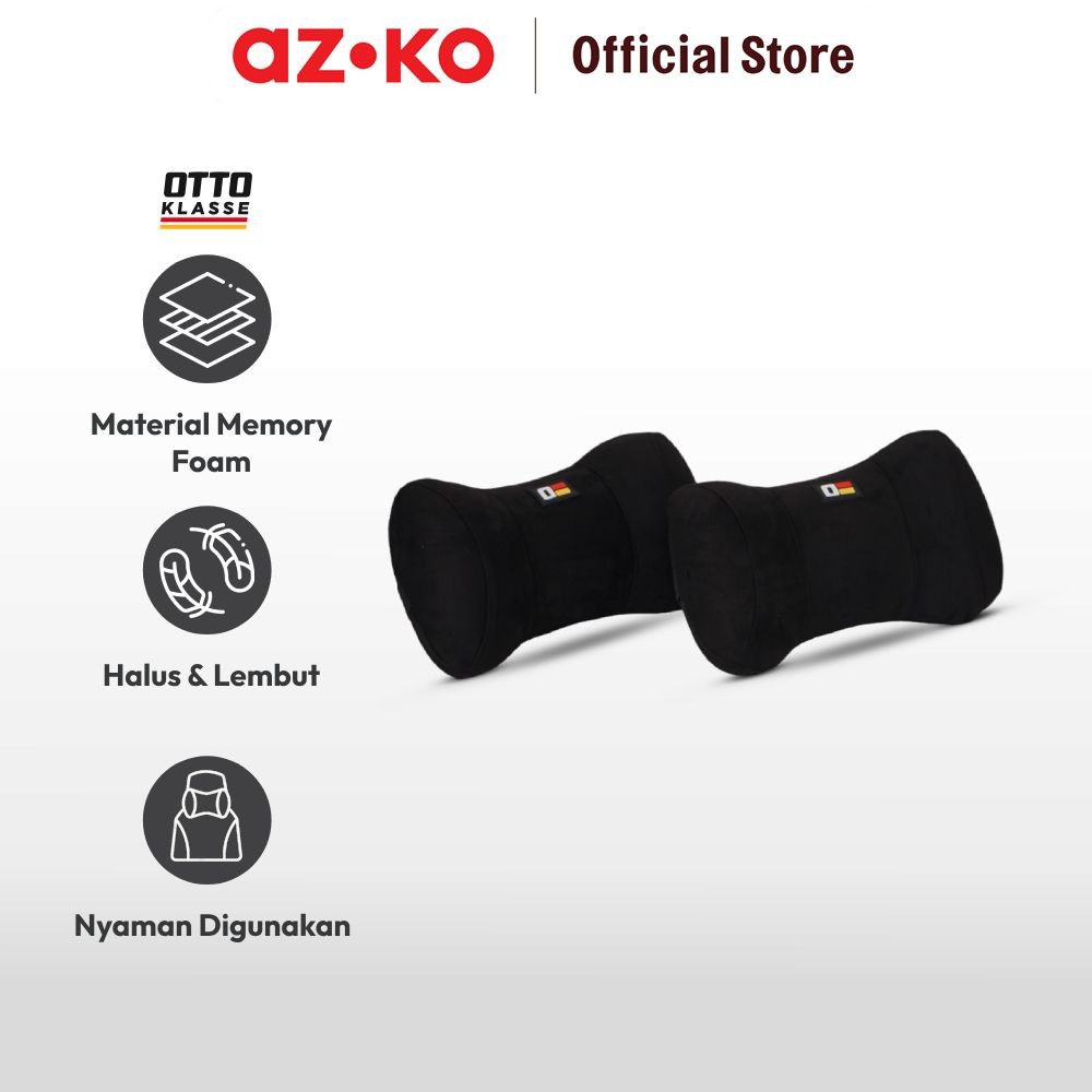 azko otto klasse set 2 pcs bantal leher kursi mobil suede - hitam head pillow car sandaran kepala kursi mobil aksesoris interior mobil
