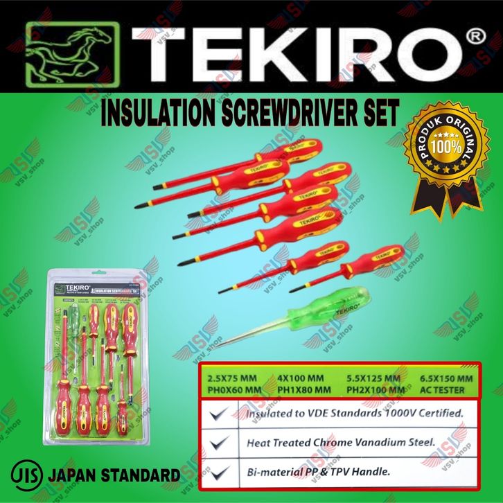 TEKIRO Obeng Listrik Set 8pcs Insulation screwdriver Set Blister
