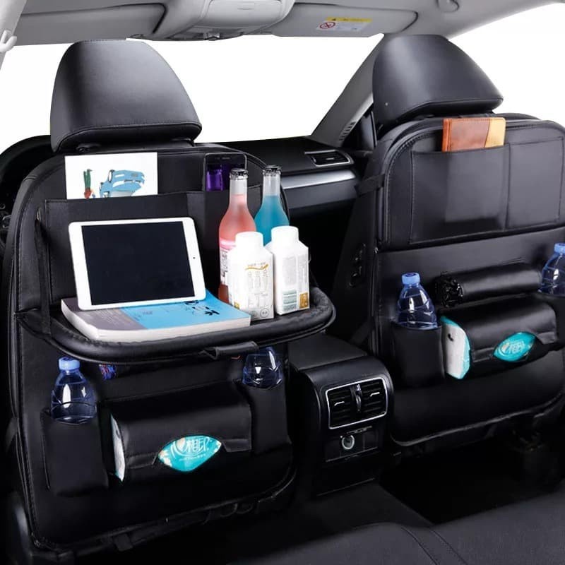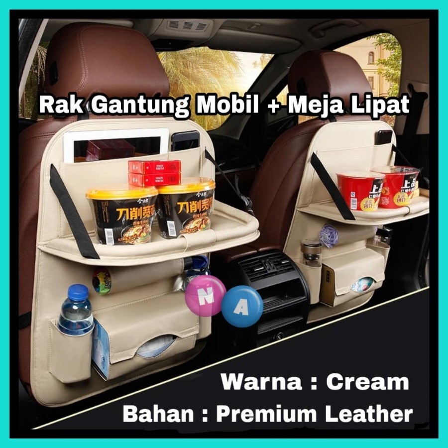 car seat organizer foldable - rak gantung mobil kulit dengan meja lipat