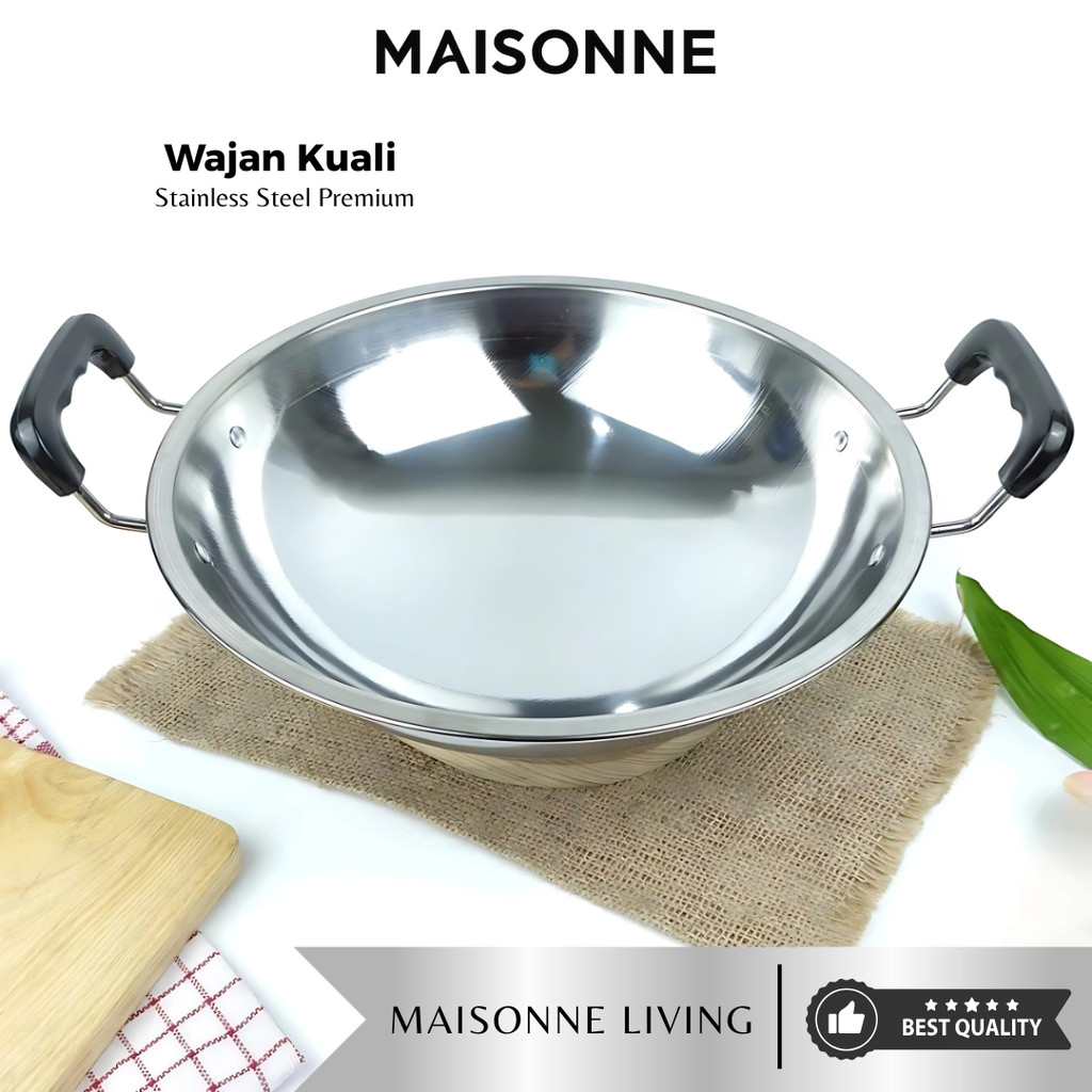 MAISONNE Wajan Kuali Penggorengan Wok Pan Stainless Steel Tebal Anti Lengket Cookware Kitchenware