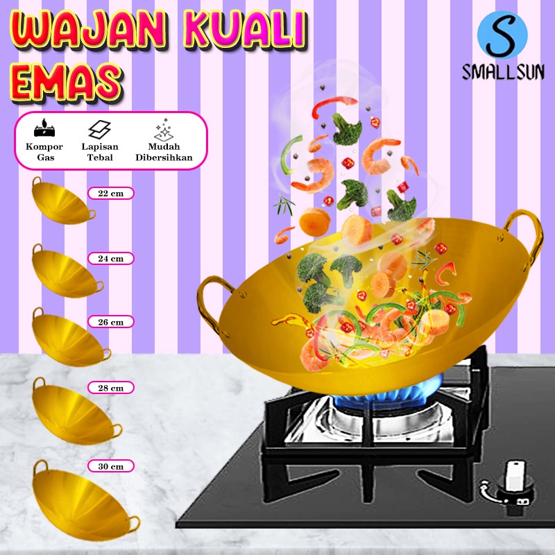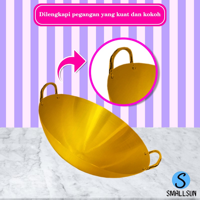 (SS) Wajan Kuali 32cm Wajan Penggorengan Stainless Wajan Anti lengket Warna Emas