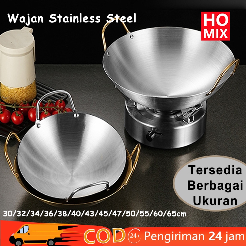 HOMIX 30-65CM Wajan Penggorengan Wajan Stainless Steel Besar Katel Anti Lengket Tebal Kuali Premium Dengan Pegangan Kual